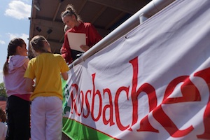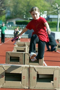 Sportinteressierten Kindern und Erwachsenen Spaß an der Leichtathletik und an Bewegung im Allgemeinen vermitteln. Das war das Ziel des 1. Breitensporttags des Hessischen Leichtathletik-Verbandes. „Dieses Ziel haben wir erreicht“, bilanziert HLV-Breitensportwartin Konstanze Neu-Müller. „Die Teilnehmer waren mit Spaß dabei und sind mit einem Lächeln im Gesicht nach Hause gegangen“. Den Auftakt machte am Freitagvormittag ein Grundschul-Wettkampf nach dem neuen Kinderleichtathletik-Wettkampfsystem des Deutschen Leichtathletik-Verbandes. Zwölf Teams aus den Marburger Grundschulen nahmen hieran teil. Drei Stunden lang übten sie sich mit großer Freude an vier Disziplinen: Pendelstaffel im Hindernis-Sprint, Biathlon-Staffel, Medizinballstoßen und Weitsprungstaffel. Begleitet wurde der Wettkampf von HLV-Stabhochsprung-Kadertrainerin Anastasija Reiberger – ihres Zeichens Hallenweltmeisterin im Stabhochsprung 1999 und ehemalige vierfache Junioren-Weltrekordhalterin. Sie gab wertvolle Trainingstipps, machte auch das Aufwärmprogramm mit den kleinen Nachwuchstalenten und gab fleißig Autogramme.
