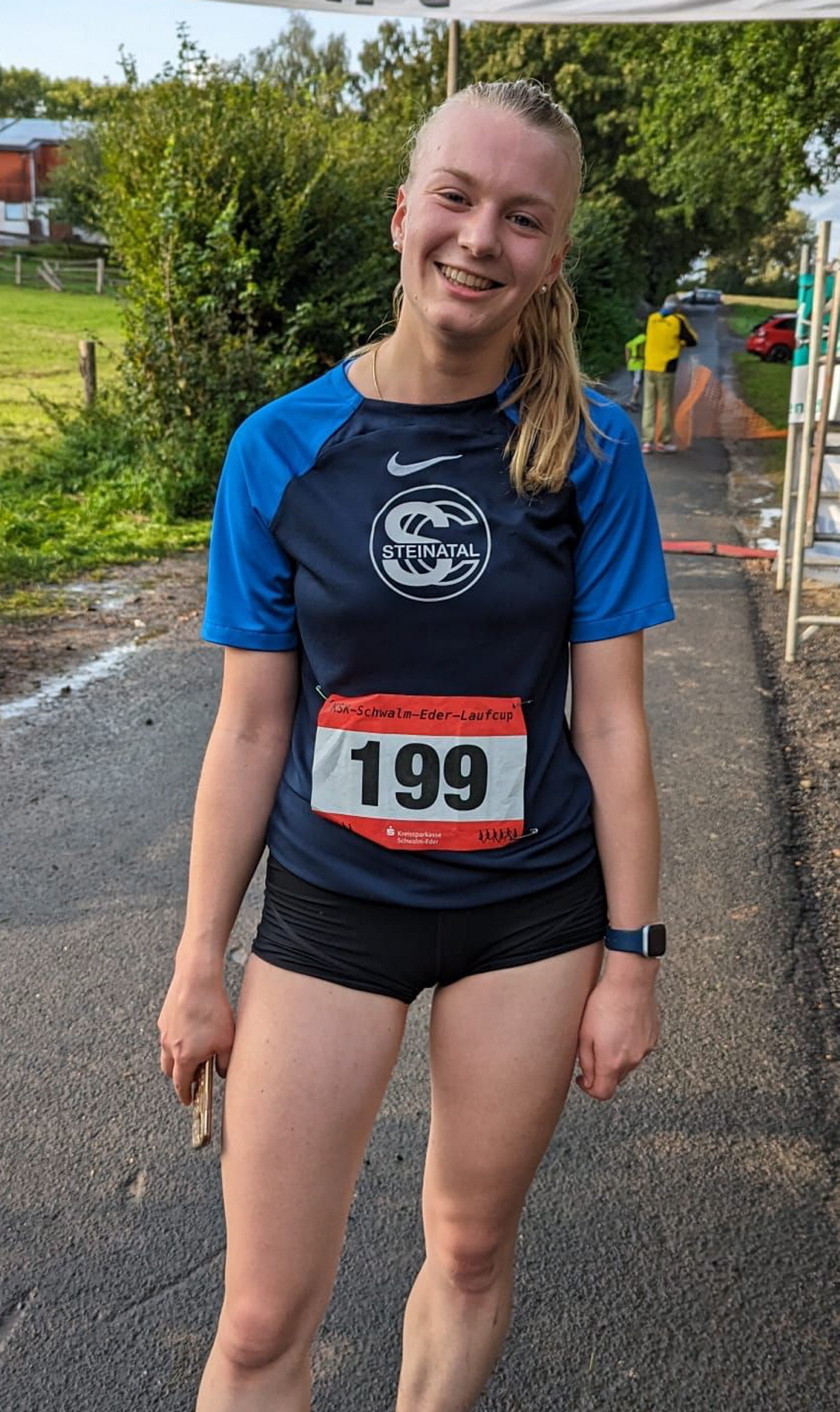 Nach bisher vier Siegen in der M 50 ist Hans-Gerrit Auel (SCS/ 42:52) der Pokal in der M 50 nicht mehr zu nehmen. Vier Punkte beträgt bereits der Vorsprung vor Daniel Henkel (Ren(n)tiere Homberg/43:24). Da stand Tochter Junia Auel (SCS) nicht nach. Die 20-Jährige studiert in Mainz Medizin und verband einen Familienbesuch in der Schwalm mit einem Start über 10 Kilometer der Frauen. In 48:19 Minuten bewältigte die Pastorentochter die Distanz über sieben Brücken der Schwalm und der Urff und verwies Sophia Köhler (K-Team/49:00) sowie die U 18-Athletin Carlotta Benecke (CJD Oberurff/49:59) auf die Plätze.