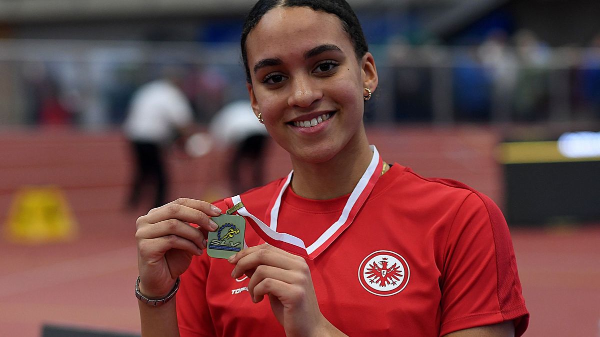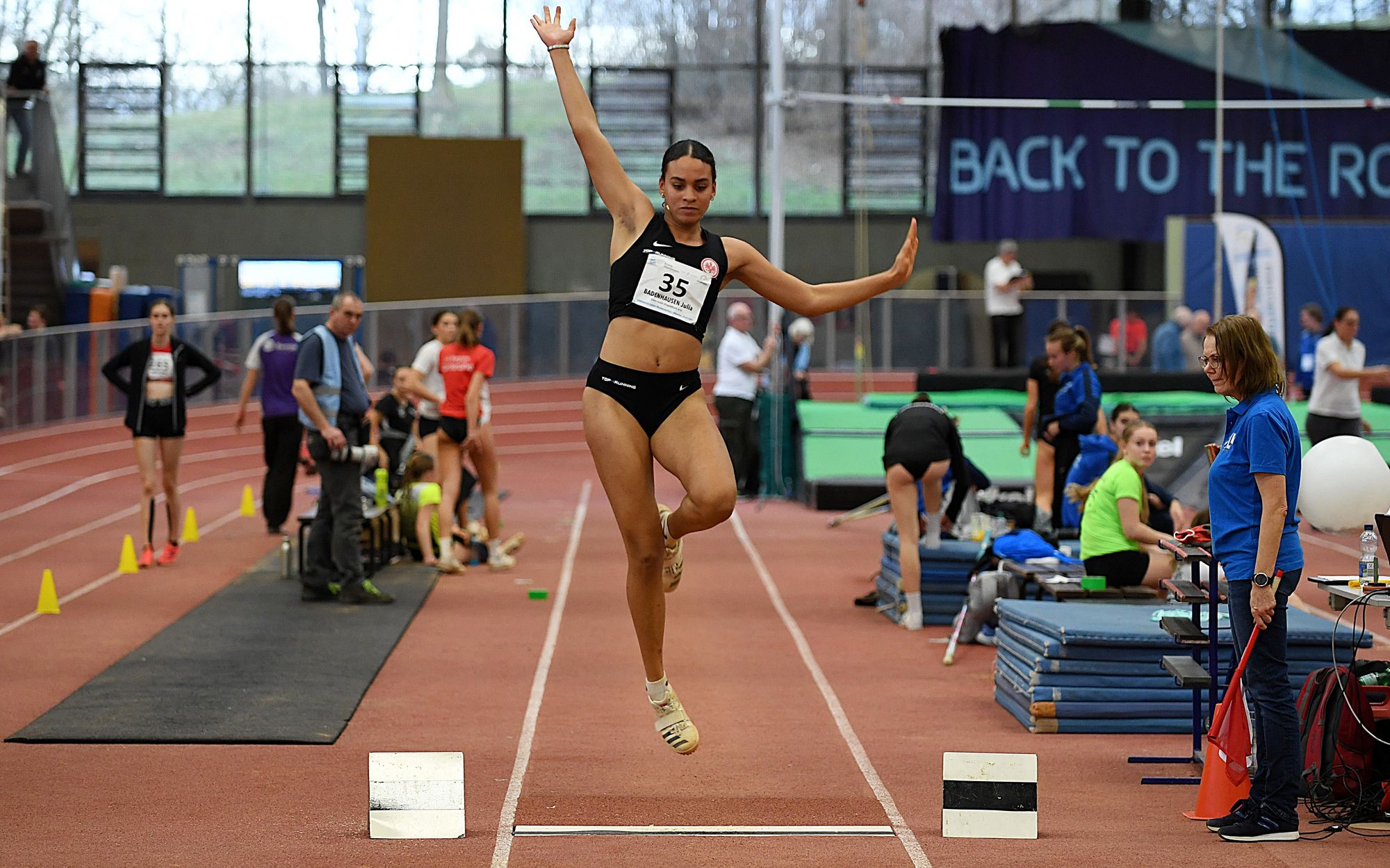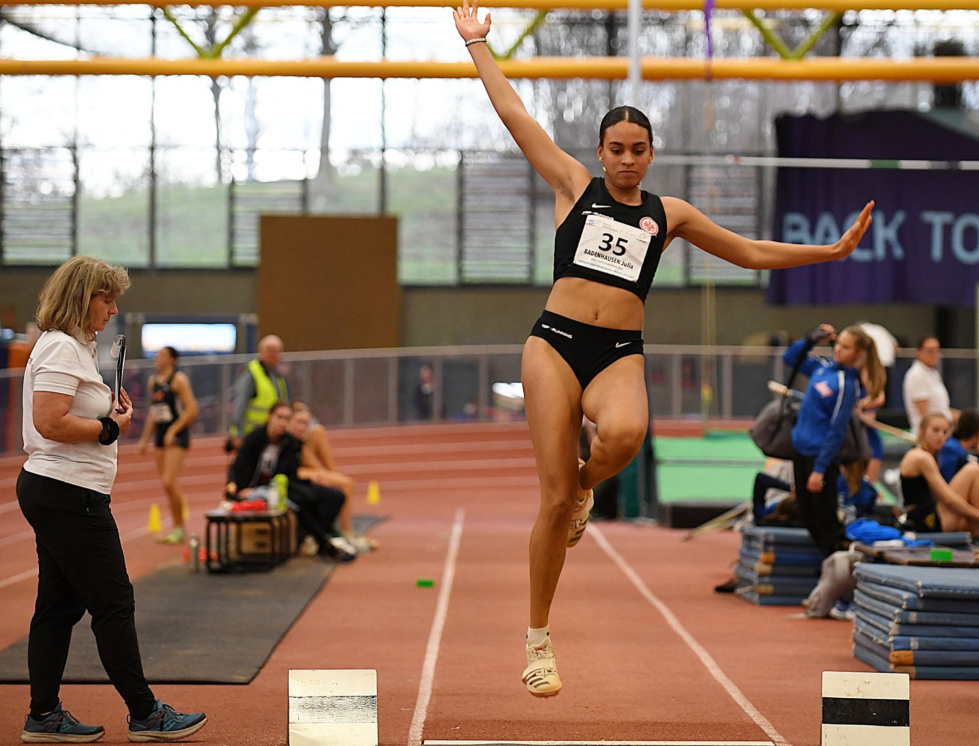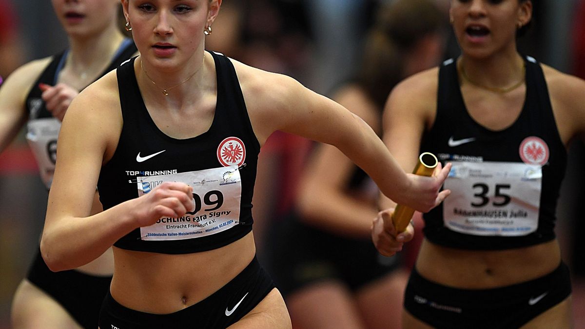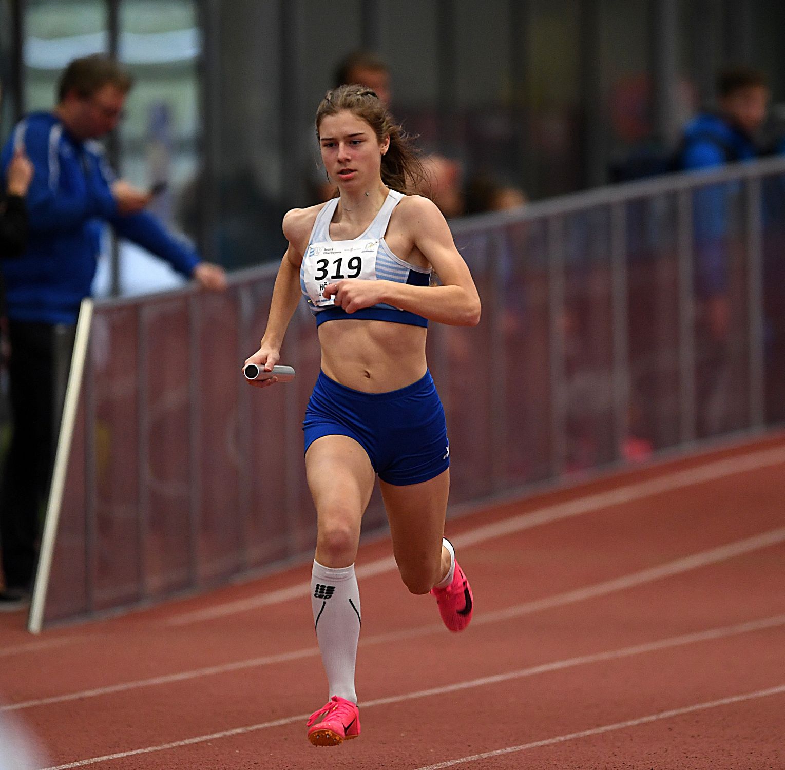 Nichts für schwache Nerven war das Finale über 60 Meter Hürden bei den Mädels. Nach Auswertung des Zielfotos trennten die beiden Spitzenkräfte nur 0,01 Sekunden. Louisa Grauel (TV Gelnhausen) hatte mit der neuen Bestzeit von 8,63 Sekunden dann das bessere Ende für sich. Fara Signy Köchling (Eintracht Frankfurt/8,64 sec.) konnte sich neben „Silber“ aber ebenfalls über eine neue Bestmarke freuen. Lotta Egbers (Eint. Ffm./8,92 sec) wurde Vierte. Ihr fehlten nur 0,11 Sekunden für den kompletten hessischen Triumph. Den begehrten SDM-Titel gab es für die beiden SGE-Athletinnen dann mit der Staffel ihres Vereins über 4x200 Meter. Die Adler-Trägerinnen setzten sich in der Besetzung Sonja Schwab, Julia Badenhausen, Fara Signy Köchling und Lotta Egbers in 1:42,76 Sekunden ganz souverän mit fast zwei Sekunden Vorsprung (Welten im Sprint) gegen die Startgemeinschaft „Mainz/Bingen“ (1:44,50 sec.) durch. Auch Emmanuella Adusei trägt das Eintracht Trikot und durfte nach 7,78 Sekunden im Sprintfinale auf die dritte Stufe des Siegertreppchens steigen. Auch für Amelie Tortell (LG OVAG Friedberg-Fauerbach) gab es die Bronzemedaille. Die zierliche Mittelstrecklerin wurde über 800 Meter mit 2:14,52 Minuten gestoppt. „So schnell war ich noch nie unterwegs. Das ist eine neue Bestzeit, über die ich mich riesig freue. Zum Schluß sind mir die Beine ganz schön schwer geworden, aber zum Glück hat es gereicht“, verriet die kleine Schwester von 3000-Meter-Meister Marc Tortell, der hinter der Bande stand und Amelie kräftig anfeuerte. Im Hochsprung meisterte Nina Stöhr (Amicitia Viernheim) als Achte mit 1,61 Metern eine neue Bestmarke. Grund zum Strahlen hatte Julia Badenhausen (Eintracht Frankfurt), die beim Weitsprung nach 5,55 Meter wieder Bodenkontakt hatte und sich mit dieser neuen Bestmarke den dritten Platz sicherte. Auf dem ungeliebten vierten Platz (5,47 m) beendete Anabel Gajic (SV Fun-Ball Dortelweil) diese Konkurrenz. Zudem beförderte Anabel die Kugel als Siebte auf die neue Bestmarke von 12,47 Metern. Komplettiert wurde das hessische Medaillen-Festival in der bayerischen Landeshauptstadt durch den Bronze-Rang (11,41 m) im Dreisprung von Josephina Engel (ASC Darmstadt).