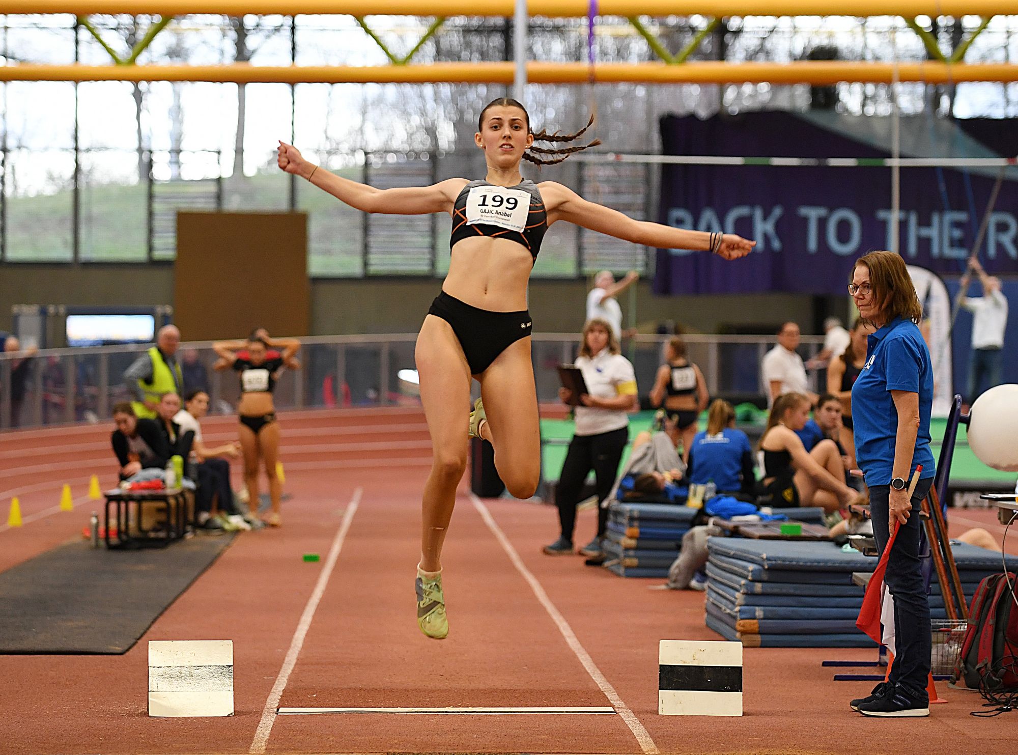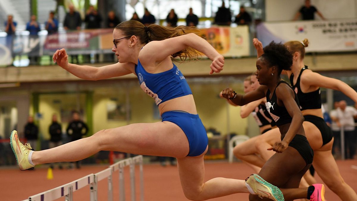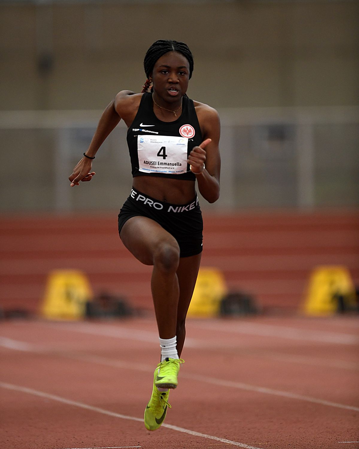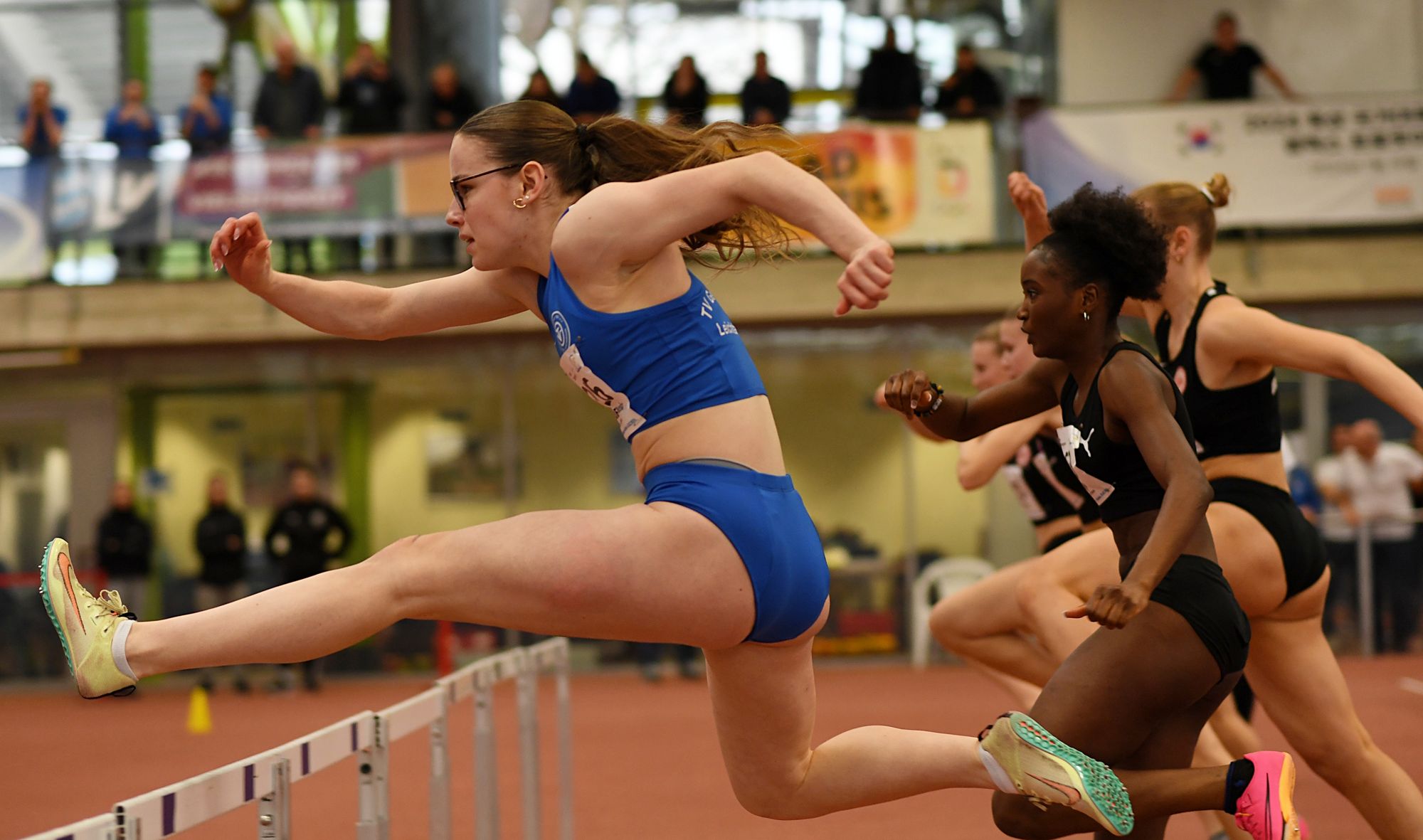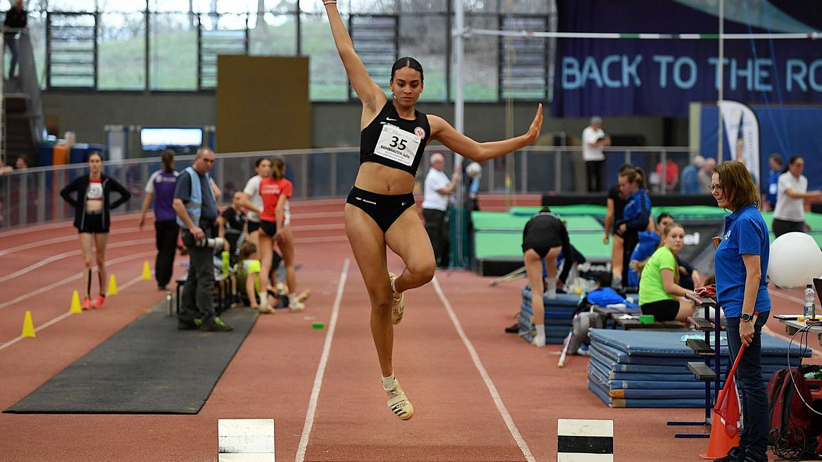 Nichts für schwache Nerven war das Finale über 60 Meter Hürden bei den Mädels. Nach Auswertung des Zielfotos trennten die beiden Spitzenkräfte nur 0,01 Sekunden. Louisa Grauel (TV Gelnhausen) hatte mit der neuen Bestzeit von 8,63 Sekunden dann das bessere Ende für sich. Fara Signy Köchling (Eintracht Frankfurt/8,64 sec.) konnte sich neben „Silber“ aber ebenfalls über eine neue Bestmarke freuen. Lotta Egbers (Eint. Ffm./8,92 sec) wurde Vierte. Ihr fehlten nur 0,11 Sekunden für den kompletten hessischen Triumph. Den begehrten SDM-Titel gab es für die beiden SGE-Athletinnen dann mit der Staffel ihres Vereins über 4x200 Meter. Die Adler-Trägerinnen setzten sich in der Besetzung Sonja Schwab, Julia Badenhausen, Fara Signy Köchling und Lotta Egbers in 1:42,76 Sekunden ganz souverän mit fast zwei Sekunden Vorsprung (Welten im Sprint) gegen die Startgemeinschaft „Mainz/Bingen“ (1:44,50 sec.) durch. Auch Emmanuella Adusei trägt das Eintracht Trikot und durfte nach 7,78 Sekunden im Sprintfinale auf die dritte Stufe des Siegertreppchens steigen. Auch für Amelie Tortell (LG OVAG Friedberg-Fauerbach) gab es die Bronzemedaille. Die zierliche Mittelstrecklerin wurde über 800 Meter mit 2:14,52 Minuten gestoppt. „So schnell war ich noch nie unterwegs. Das ist eine neue Bestzeit, über die ich mich riesig freue. Zum Schluß sind mir die Beine ganz schön schwer geworden, aber zum Glück hat es gereicht“, verriet die kleine Schwester von 3000-Meter-Meister Marc Tortell, der hinter der Bande stand und Amelie kräftig anfeuerte. Im Hochsprung meisterte Nina Stöhr (Amicitia Viernheim) als Achte mit 1,61 Metern eine neue Bestmarke. Grund zum Strahlen hatte Julia Badenhausen (Eintracht Frankfurt), die beim Weitsprung nach 5,55 Meter wieder Bodenkontakt hatte und sich mit dieser neuen Bestmarke den dritten Platz sicherte. Auf dem ungeliebten vierten Platz (5,47 m) beendete Anabel Gajic (SV Fun-Ball Dortelweil) diese Konkurrenz. Zudem beförderte Anabel die Kugel als Siebte auf die neue Bestmarke von 12,47 Metern. Komplettiert wurde das hessische Medaillen-Festival in der bayerischen Landeshauptstadt durch den Bronze-Rang (11,41 m) im Dreisprung von Josephina Engel (ASC Darmstadt).