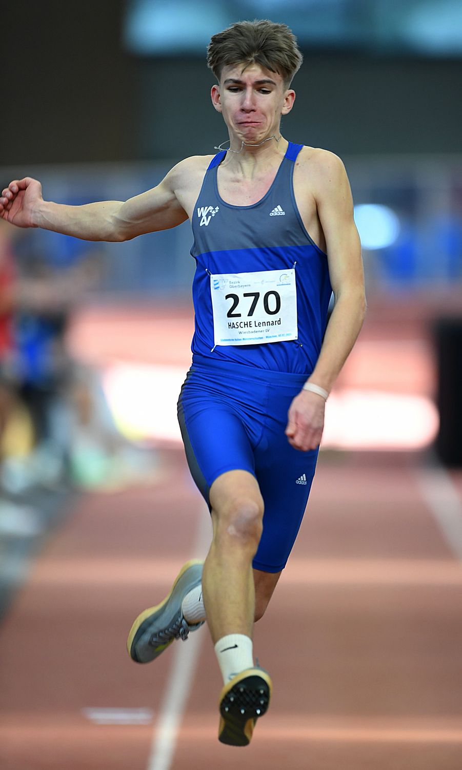 Auf der Hallenrunde ging das hessische Medaillen-Festival weiter. Hinter dem Gewinner Linus Valnion (TSG Deidesheim/22,55 sec.) wurden noch Darian Ave (Hünfelder SV/22,59 sec.) sowie Niklas Becker (SG Egelsbach/22,68 sec.) zur Siegerehrung gerufen. Luca Barowski (TV Rendel) stürmte in 8,33 Sekunden (VL 8,29 sec.) durch den „Hürdenwald“ und wurde dafür mit der Bronzemedaille belohnt. Doch das sollte nicht das einzige Edelmetall für den Youngster aus der Wetterau bleiben. Mit der neuen Bestmarke von 6,93 Metern setzte sich Luca bei der Weitenjagd durch und kratzte an den sieben Metern!