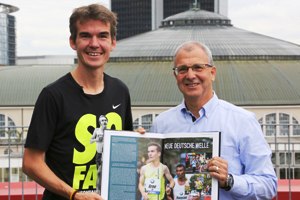 Wenn Arne Gabius über seine Ziele beim Frankfurt-Marathon spricht, dann „ohne Mauern im Kopf" wie er sagt. „Eine Zeit zwischen 2:07 und 2:08 Stunden - warum denn nicht?", so der 34-Jährige bei einer Pressekonferenz des Frankfurt-Marathons am Dienstag. Nach seinem fulminanten Marathondebüt im Vorjahr am Main in 2:09:32 Stunden, der viertschnellsten je von einem Deutschen gelaufenen Zeit, will Gabius am 25. Oktober den 27 Jahre alten deutschen Rekord brechen. Dafür müsste der derzeit erfolgreichste deutsche Langstreckenläufer auf dem Frankfurter Kurs nochmals 46 Sekunden schneller unterwegs sein. „Ich gehe davon aus, dass der deutsche Rekord fallen wird", sagt Gabius, der sich in Frankfurt selbstbewusst und zugleich entspannt vor den entscheidenden Wochen der Rennvorbereitung präsentierte.<ENDE/>