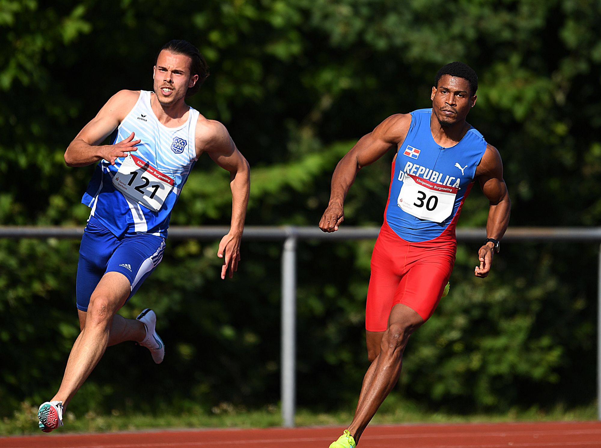 Nachdem bei der Premiere des „Königsteiner Burg-Meetings“ besonders auf den Mittelstrecken hervorragende Zeiten erzielt wurden, standen diesmal die Sprints und die Staffeln im Fokus des Geschehens. Mit einem Doppelsieg glänzte ein Mann aus der Dominikanischen Republik. Jose Alnardo Gonzales Soto war bei der Olympia-Qualifikation seines Landes noch nicht in Top-Form und tingelt nun durch Europa. Bei Gegenwind (- 1,0 m/sec.) war in starken 10,32 Sekunden der erste Sieg des Abends eingetütet und zu einer neuen Bestzeit (bisher 10,26 sec.) fehlte nicht viel. Nur gut 30 Minuten später ging der Mann von der Karibikinsel erneut in den Startblock und machte über die 200 Meter schon gleich in der Kurve mächtig Druck. Der Lohn für Gonzales Soto war eine Verbesserung seines Hausrekordes um fast 0,10 Sekunden auf nun sehr flotte 20,52 Sekunden. Übrigens eine Zeit, die in diesem Jahr noch kein deutscher Athlet zeigen konnte. Jeweils Platz zwei auf beiden Sprint-Distanzen ging an Tim Kolbe (TSG Friedrichsdorf). Der U23er blieb mit 10,81 bzw. 21,76 Sekunden nur knapp über seinen Bestmarken, die seit dem letzten Monat bei 10,76 sowie 21,72 Sekunden notieren. Beim Nachwuchs der U18 gefiel Lokalmatador Julian Rubel (KLV) mit der neuen PB von 10,07 Sekunden.