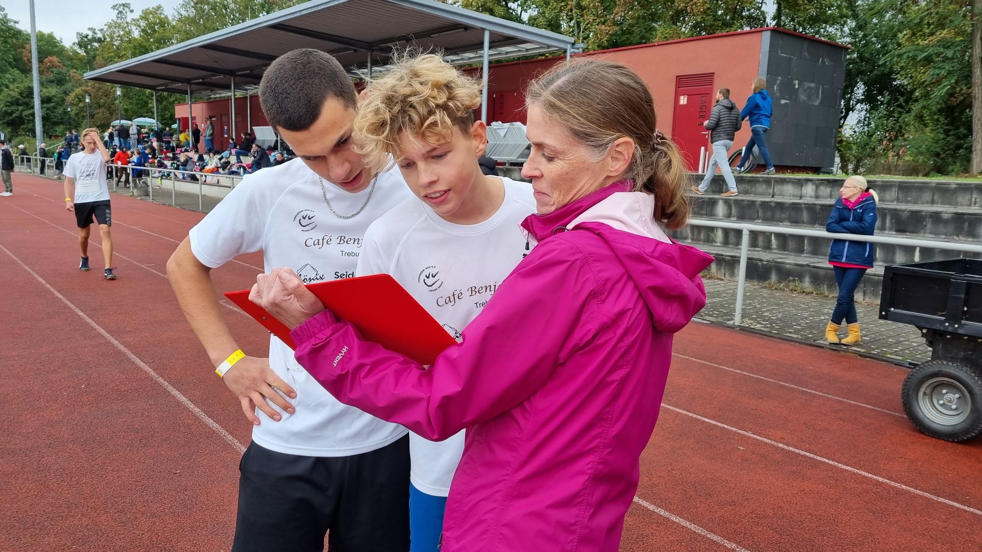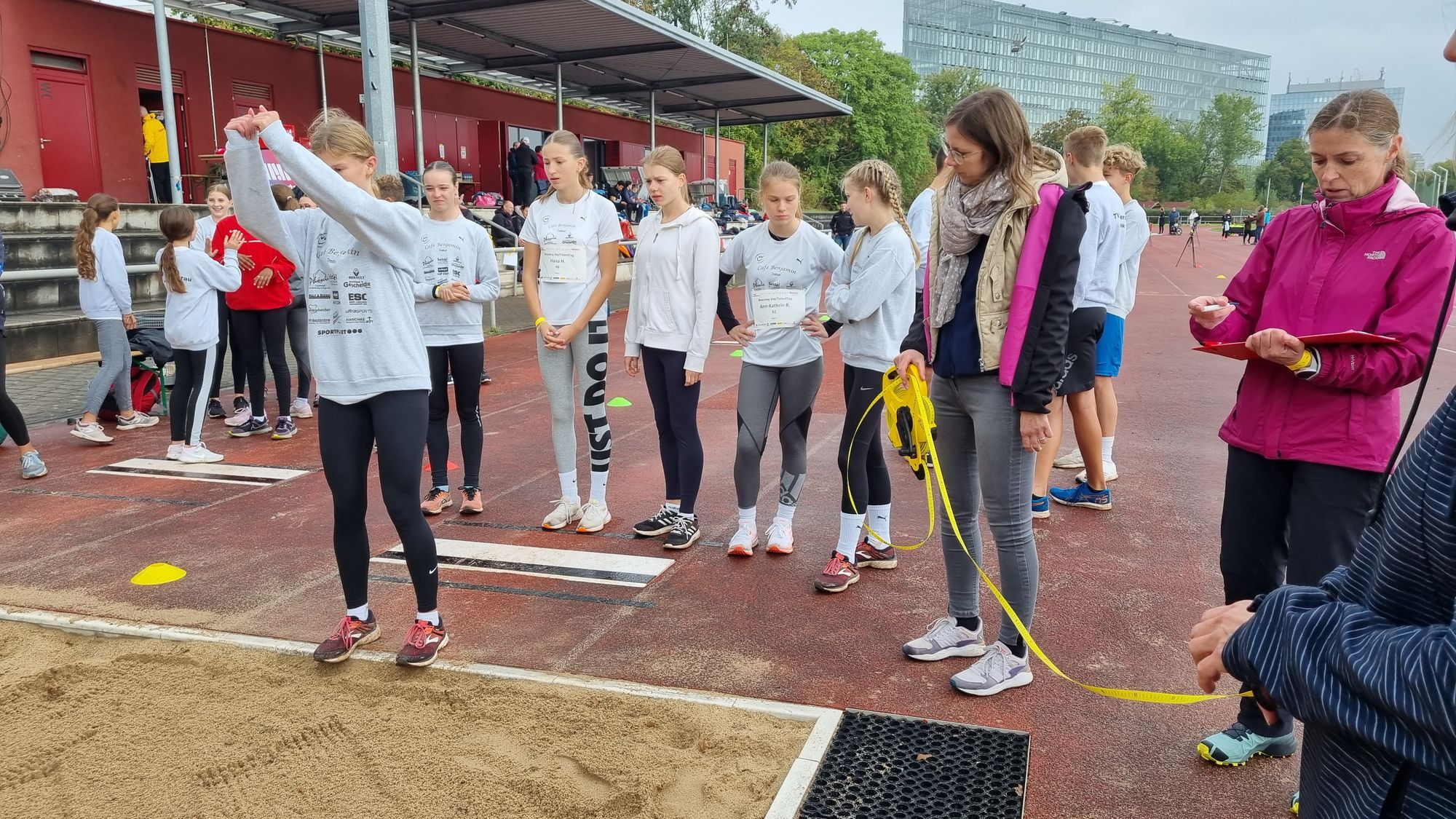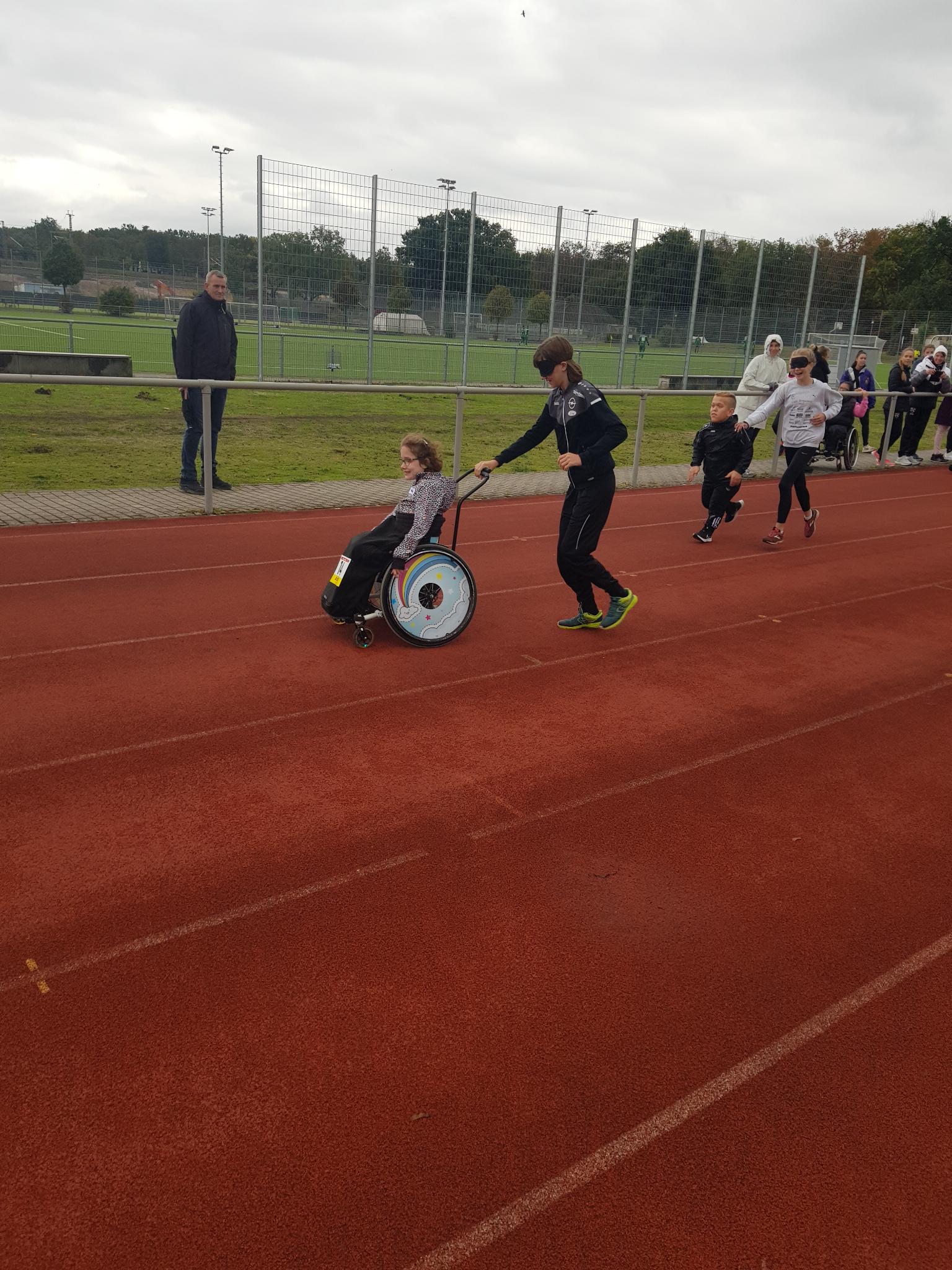 Alle Kinder und Riegenführer trotzten dem Herbstwetter auch in ihren Pausen, die gelegentlich etwas länger als geplant waren. Zum Ende des Aktionstages schloss der Scouting Day mit einer 8x50m Mixed-Staffel, bei der alle 8 Segmente auf eine andere Fortbewegungsart zurückgelegt werden mussten. Als Highlight dieser Staffel waren die beiden Segmente, die der HBRS organisierte, besonders aufgefallen. Ein Segment musste so schnell wie möglich in Sportrollstühlen zurückgelegt werden. Ein daran anschließendes 50m Segment musste dann „blind“ mit einer führenden Person absolviert werden.