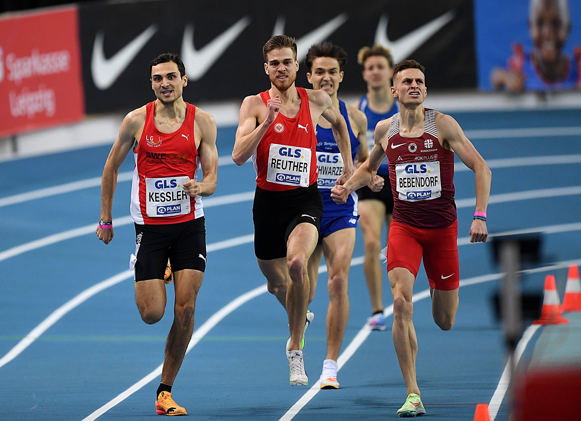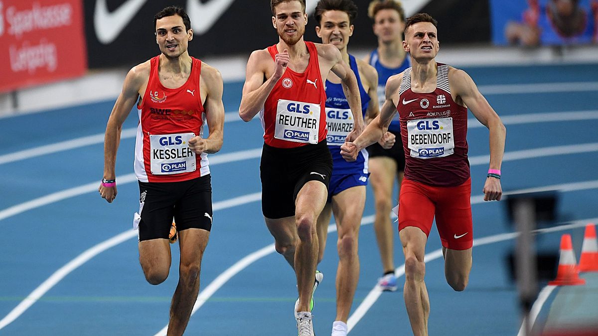 Gerade bei den 800 Metern galt Marc Reuther als klarer Anwärter auf den Sieg. Mit seinen 1:46,41 Minuten führte der Mittelstreckler von der Frankfurter Eintracht die Meldeliste doch souverän an und hatte jungst in Birmingham mit einem flotten Rennen seine Favoritenrolle nochmals untermauert. In einem nicht sonderlich flott angelaufenen Finale schleppte Christoph Kessler (LG Region Karlsruhe) das Feld in 53,52 Minuten über die beiden ersten Runden. Wenig später übernahm Karl Bebendorf (Dresdner SC) die Initiative und setzte sich an die Spitze. Marc Reuther war ebenfalls ganz vorne mit dabei, konnte in der entscheidenden Phase des Endspurts dem Kick von Christoph Kessler jedoch nicht Paroli bieten und musste sich am Ende mit einem für ihn sicherlich enttäuschenden dritten Platz (1:48,29 Minuten) zufrieden geben. Der Karlsruher konnten nach diversen Vizemeisterschaften in 1:47,76 Minuten (SB) nun erstmals einen Hallen-Titel bejubeln. Beachtlich die Leistung von Hindernis-Spezialist Karl Bebendorf, der viel an seiner Tempohärte gearbeitet hat, und mit den reinen Mittelstrecklern einmal mehr bestens mithalten konnte. Die Silbermedaille (1:48,02 Minuten) war nach einem harten Finish der verdiente Lohn. Titelverteidiger Oskar Schwarzer (TV Groß-Gerau) landete auf dem undankbaren vierten Platz, hatte mit 1:48,51 Minuten jedoch eine neue Saisonbestzeit im Gepäck.