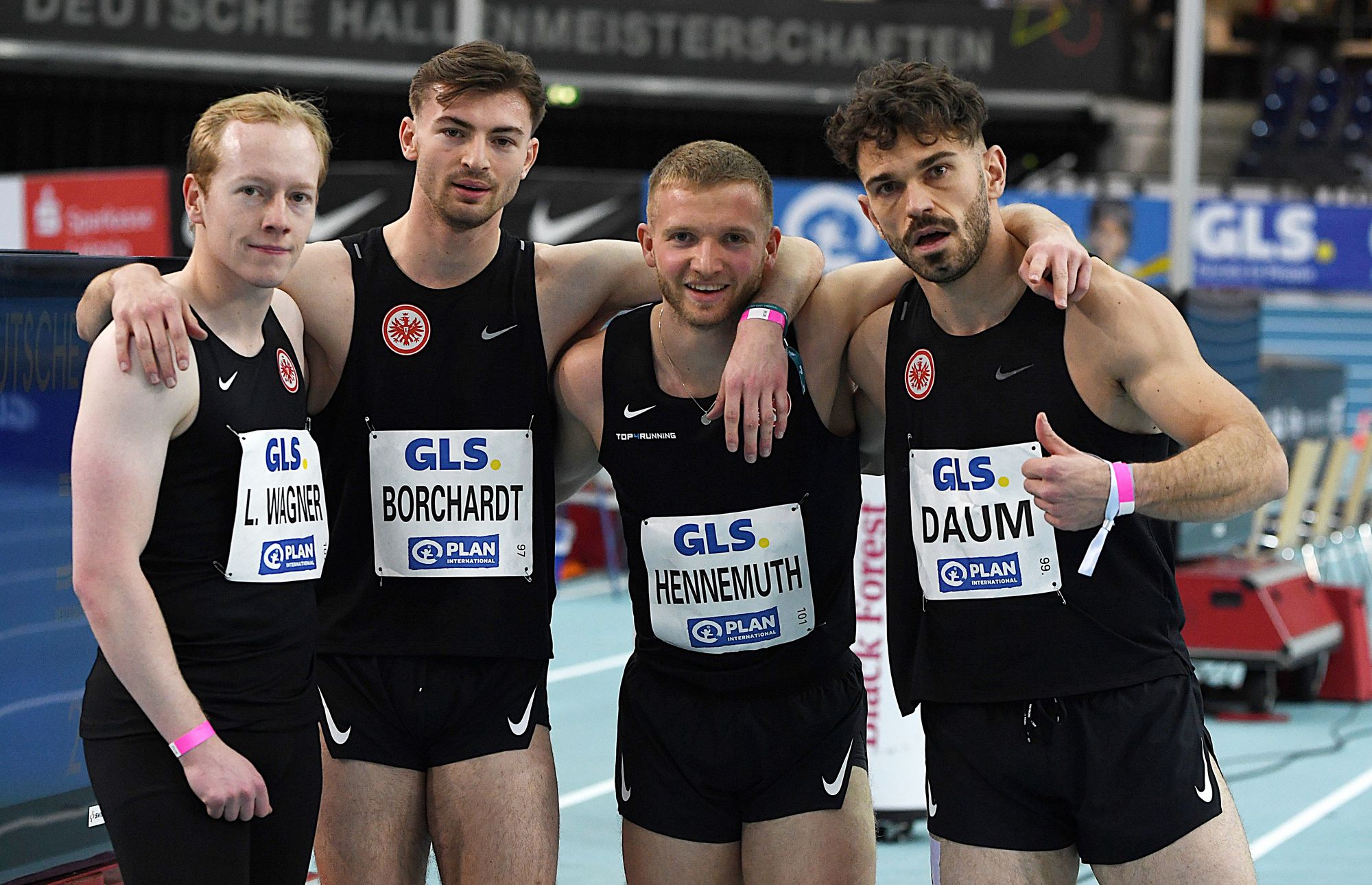 Eine echte Überraschung gab es über 4x200 Meter, die nach einjähriger Pause wieder zum Wettkampfprogramm gehörten. Die Jungs des TV Wattenscheid setzen sich mit flotten 1:24,87 Minuten und großem Vorsprung gegen die LG Brillux Münster (1:27,18 min.) durch. Bronze ging vorerst an die Staffel des TSV Bayer 04 Leverkusen. Das Team aus der Farbenstadt wurde aber nachträglich disqualifiziert, nachdem ein Läufer mit einem sehr gewagten Spurwechsel in der Kurve einen Athleten des SCC Berlin zum Sturz gebracht hatte. Davon profitierte dann das Eintracht-Quartett (Borchardt, Hennemuth, Wagner, Daum), das einen Platz nach vorne rutschte und mit 1:27,43 Minuten unerwartet zu DM-Bronze kam. Zudem musste auch der TSV Gräfeling aufgeben, die in dieser Saison schon 1:26,95 Minuten abgeliefert hatte.