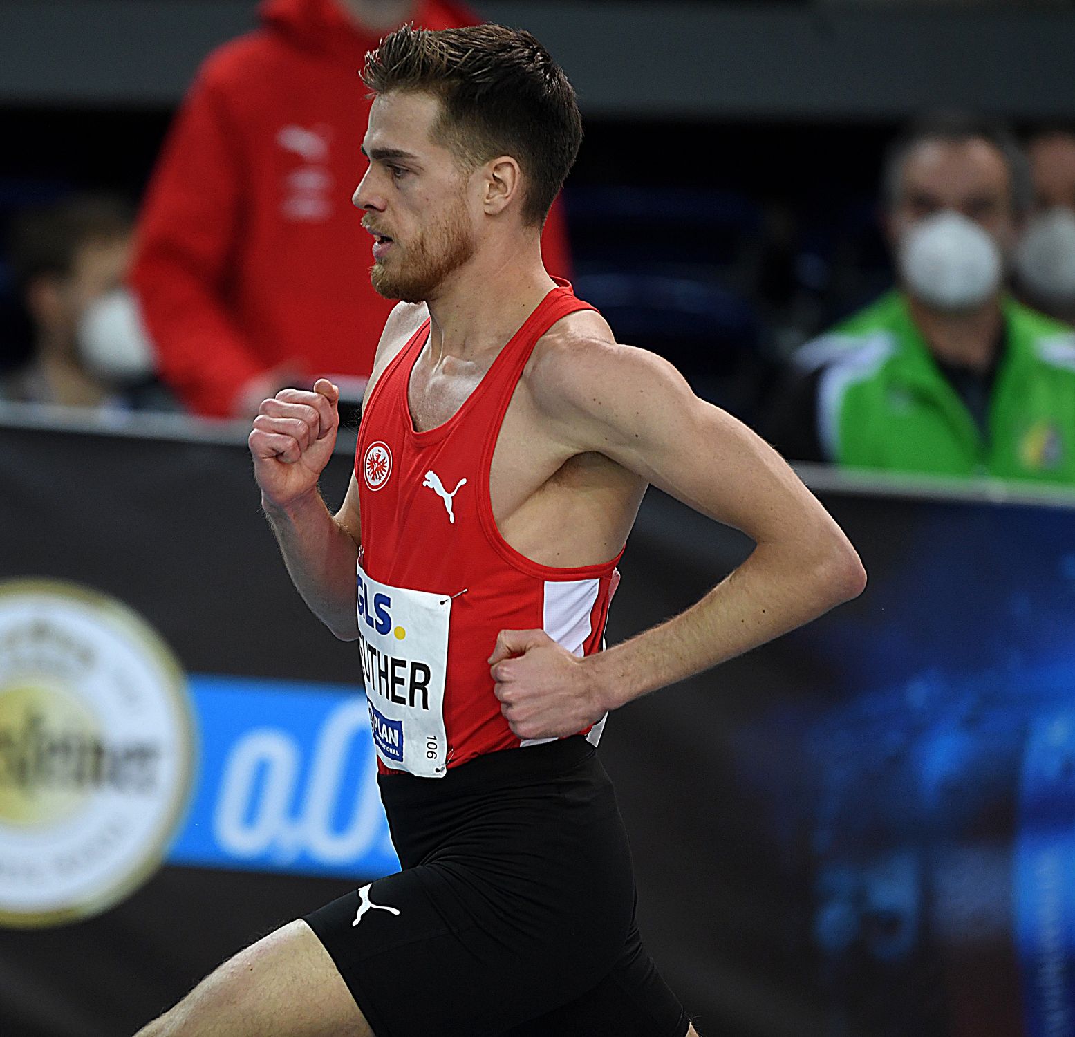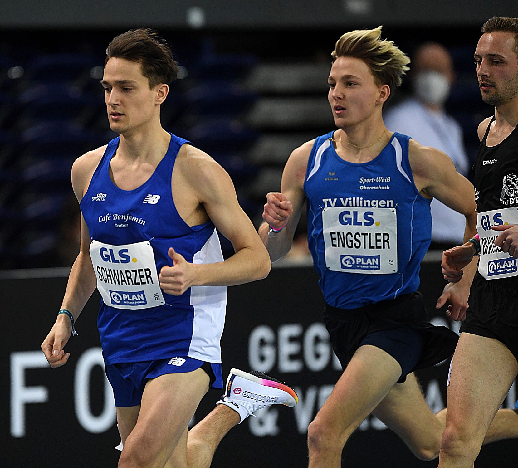 Eine nicht erwartete Medaille gab es über die 1500 Meter, wobei das Finale ein typisches Meisterschaftsrennen war. Wenig Tempo am Anfang, harter Kick am Ende. Durchgangszeiten von 65 Sekunden über 400 Meter und 2:11 Minuten erinnerten eher an ein flottes 800-Meter-Rennen bei den Schülern. Als noch anderthalb Runden zu laufen waren, wurde es Robert Farken (SC DHfK Leipzig) zu bunt. Der Lokalmatador trat unter dem Jubel der rund 1500 Zuschauer beherzt an und sprengte das Feld. Mit 3:50,70 Minuten wurde er dann seiner Favoritenrolle auch vollauf gerecht. Lediglich Mohamed Mohumed (LG Olympia Dortmund) konnte in 3:52,34 Minuten einigermaßen folgen, dem ehemaligen 800-Meter-Mann aber seinem ersten Hallen-Titel auf der längeren Mittelstrecke jedoch nicht mehr streitig machen. Der Kampf um Bronze war eine spannende Angelegenheit. Lukas Abele (SSC Hanau-Rodenbach) kämpfte im Spurt eisern um jeden Meter, konnte auf der Zielgeraden den vor ihm laufenden Tim Assmann (TV Villingen/3:53,98 min.) noch einsammeln und ihm mit 3:53,78 Minuten die Bronzemedaille noch vor der Nase wegschnappen.
