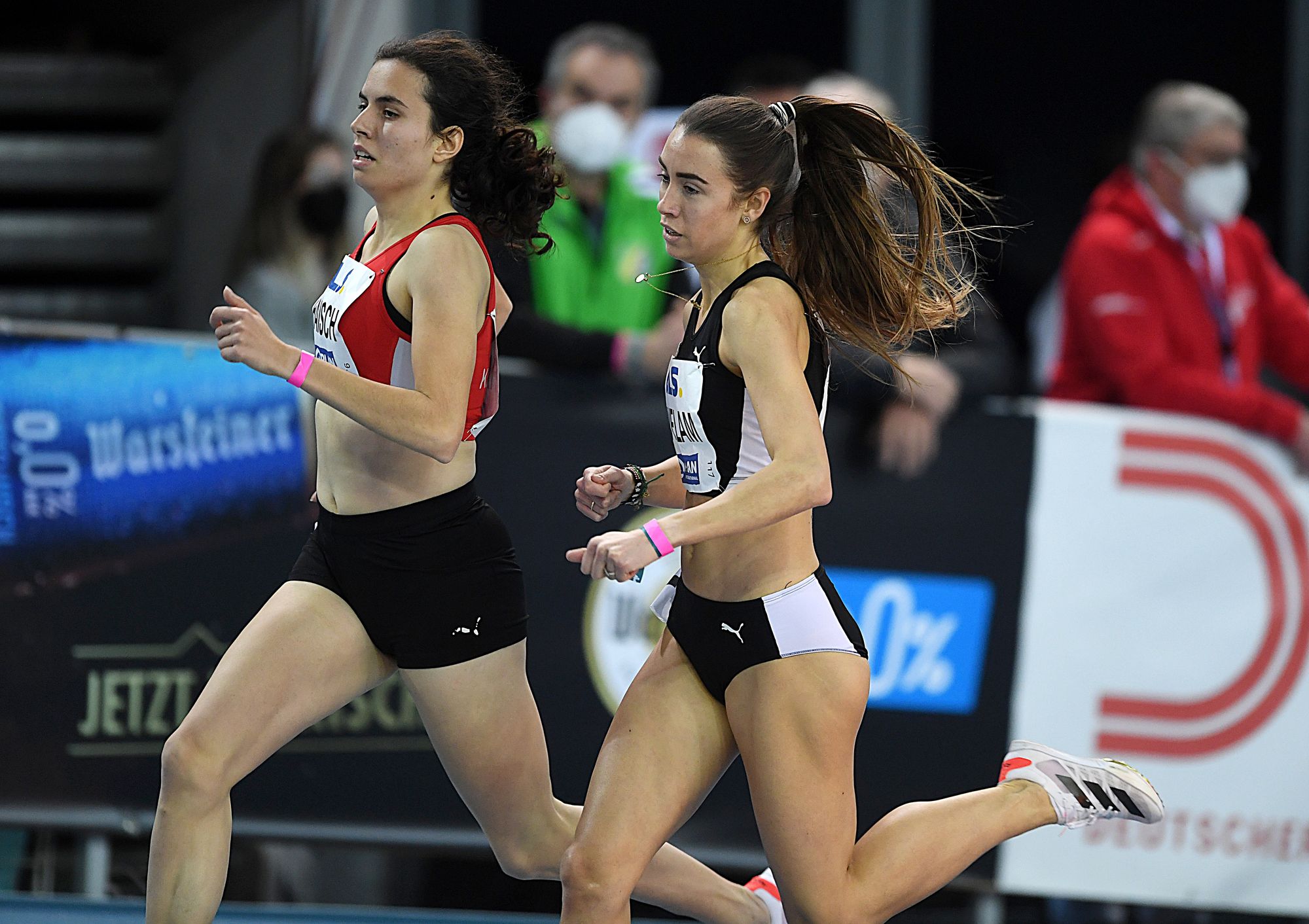 Bei den Frauen waren am zweiten DM-Tag aus lokaler Sicht nur zwei Athletinnen über 800 Meter im Einsatz. Christina Hering (LG Stadtwerke München) ließ keinen Zweifel an ihrer Überlegenheit aufkommen und holte in 2:02,88 Minuten ihren bereits sechsten Hallen-Titel. Auch die Majtie Kolberg (LG Kreis Ahrweiler) konnte mit ihrer Attacke die Münchnerin nicht gefährden und wurde am Ende in der neuen Bestzeit von 2:03,62 Minuten Vizemeisterin. Das Podium komplettierte Alina Schönherr (LSV Schmölln) mit 2:06,81 Minuten. Zwei couragierte Rennen zeigte Sophia Volkmer (TV Wetzlar). Bereits in der ersten Runde gab es für die U23-Athetin mit 2:08,51 Minuten eine neue PB. Diese steigerte Sophia im Finale als Vierte dann mit 2:07,52 Minuten erneut. Damit wird Volkmer zum Ende der Hallensaison im Hessen-Ranking auf dem zweiten Platz geführt. Spitzenreiterin ist hier mit hervorragenden 2:06,45 Minuten Jana Becker (LG Wettenberg), die noch der Jugendklasse U18 angehört. Julia Swelam (TSV Kirchhain) trat als Sechste mit der neuen Saisonbestmarke von 2:09,04 Minuten die Heimreise an.