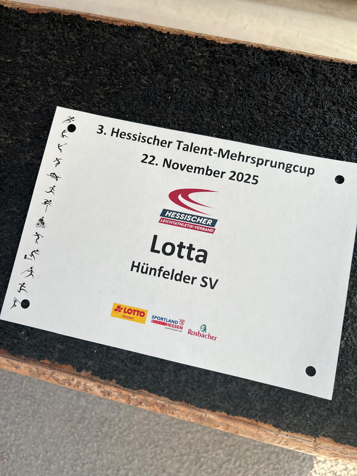 Zum nun dritten Mal hat der Hessische Talent-Mehrsprungcup stattgefunden. Die Leichtathletikhalle in Frankfurt-Kalbach war am vergangenen Samstag der Austragungsort. Vom Hünfelder SV war Lotta Roth in der Altersklasse W13 am Start. Und Lotta lieferten einen blitzsauberen Wettkampf ab. Und landete im Mehrfachsprung (5-fach-Sprung) in Ihrer Altersklasse auf dem 1. Platz. Die Weite beachtliche 15,90 Meter.