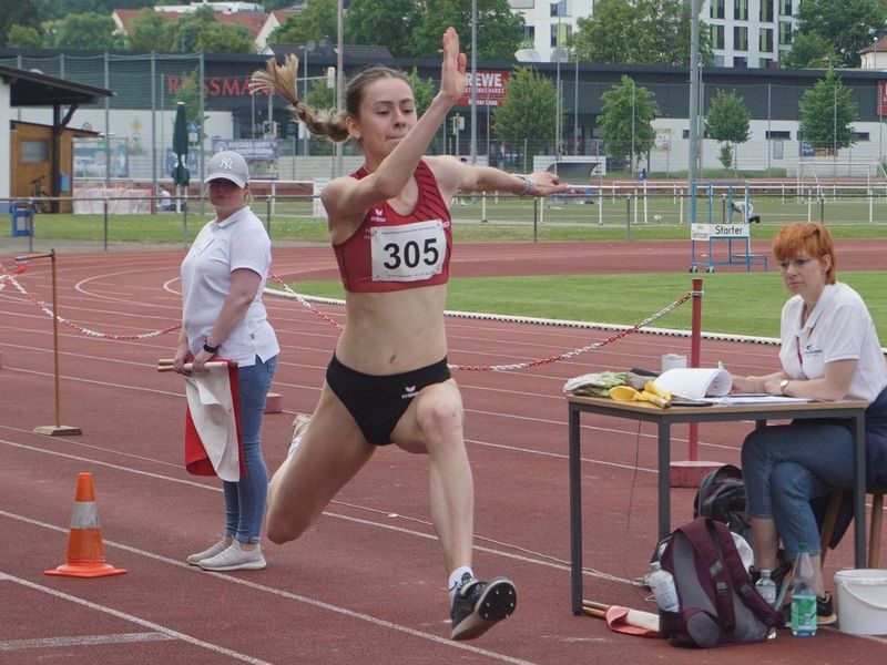 Dieselbe Ausbeute ging auch auf das Konto von Katharina Kleim (TV Roßdorf/U20) als 2. über 100m Hürden in 16,39 Sekunden und als 3. im Weitsprung mit 4,90 Metern.