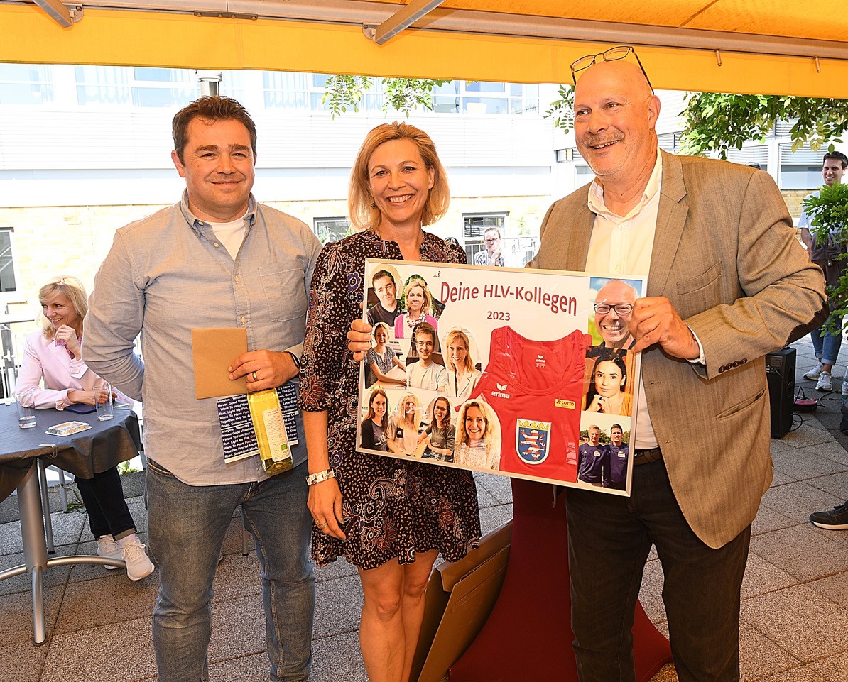 Thomas Seybold geht nach 33 Jahren HLV-Tätigkeit in Rente. Der ehemalige Geschäftsführer, der im Januar von Thorsten Kertz und Carsten Ebert abgelöst wurde, fing seine Tätigkeit unter dem damaligen HLV-Präsidenten Erwin Sichmann in 1990 an und war seither eine große Stütze des HLV. Neben des ehemaligen Präsidenten Wolfgang Schad und Ehrenpräsidentin Anja Wolf-Blanke waren auch viele weitere Gäste anwesend, die im Laufe der Jahre seinen Weg begleiteten. Jochen Miersch, HLV-Laufwart, und Anja Wolf-Blanke sprachen über die gemeinsame Zeit und dankten Thomas für seinen unermüdlichen Einsatz. Auch HLV-Präsident Klaus Schuder dankte Thomas Seybold für seine 33-jährige Tätigkeit für den HLV und die gute beiderseitige Zusammenarbeit in der gemeinsamen Arbeit im Präsidium und als Präsident. Er ging auf die gemeinsame Arbeit in der Struktur- und Satzungskommission ein, an der Thomas Seybold mit seinem großen Wissen über die Verbandsstruktur und in Satzungsfragen entscheidend mitgestaltete. So ist die Strukturänderung der Geschäftsstelle heute mit zwei Geschäftsführern für den Bereich Verbandsmanagement und den Bereich Sport auf seine Empfehlung zurückzuführen. Nach dem Verbandstag und dem einstimmigen Votum der Delegierten zur Struktur- und Satzungsänderung wurde die Umsetzung direkt gemeinsam angegangen. Zum 01.01. wurden die neuen Geschäftsführer berufen und der Übergang von Thomas Seybold zu Thorsten Kertz und Carsten Ebert gestaltet. Sodass Thomas Seybold nun beruhigt sagen kann: „Ich habe fertig“.
