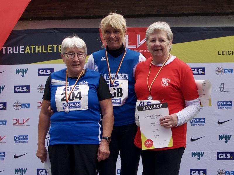 Deutsche Meisterin wurde auch Monika Hedderich (LG Offenbach) im Diskuswurf der Klasse W75. Nach Schwierigkeiten zu Beginn mit 2 ungültigen Versuchen übertraf sie im 3. Versuch mit 20,26 Metern als einzige Athletin ihrer Altersgruppe die 20-Meter-Marke. Im 5. Wurf folgte dann eine Steigerung auf ihre Tagesbestmarke von 21,93 Metern, die ihr mit 2,5 Metern Vorsprung die Goldmedaille brachte.