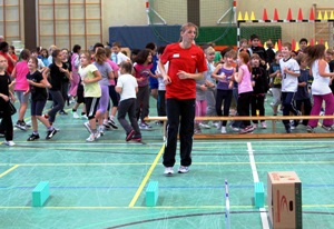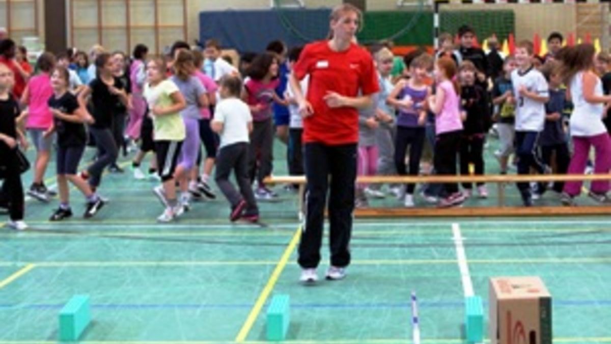 Zu Beginn der Veranstaltungen gab es einen Vortrag vom Ernährungsinstitut Bad Nauheim zum Thema „Sport und richtiges Trinken“, bei dem die Kinder viel über die Bedeutung von Getränken und Nahrung für den Körper im Allgemeinen und für Sportler im Speziellen erfahren konnten. Bei jedem Aktionstag war zudem ein prominenter Top-Athlet der hessischen Leichtathletik vor Ort. Nico Sonnenberg (Neukirchen), Beatrice Marscheck (Wetzlar), Lisa Jäsert (Neuhof) und Nastja Reiberger (Idstein). Alle vier begeisterten die Kids und mussten ausgiebig Fragen beantworten und Autogramme schreiben. Darüber hinaus waren sie aktiv an den Stationen, demonstrierten den Schülern verschiedene Übungsformen aus Lauf, Sprung und Wurf.