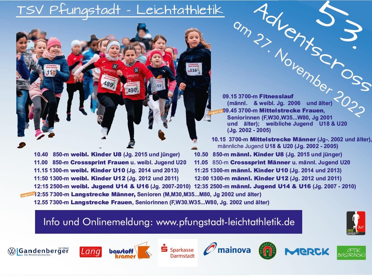 der 53. Adventscross des TSV Pfungstadt steht am 27.11.2022 vor der Tür.