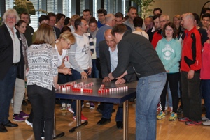 Mit den Ergebnispräsentationen zu den einzelnen Workshops endete der Kongress. Highlight war hier eine kurze Sprung-Choreografie der Teilnehmer des Workshops „Teamfähigkeit“, die sie zuvor im Praxisworkshop einstudiert hatten.