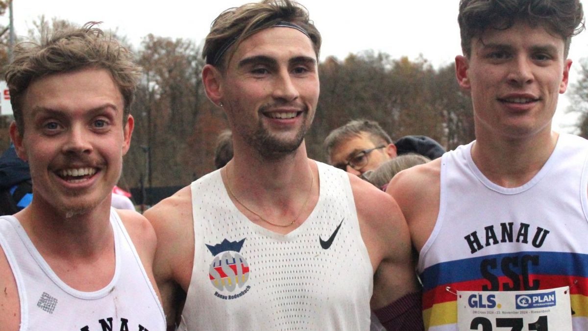 Dennoch muss der Offenbacher um die Teilnahme an der Crosslauf-Europameisterschaft am zweiten Dezember-Wochenende im türkischen Antalya bangen, denn die Funktionäre des Deutschen Leichtathletik-Verbandes sprachen vor Ort nur von ein oder zwei Nominierungen der Männer. “Ich sehe eine Chance von 60 bis 70 Prozent auf meine EM-Teilnahme, da sich Bundestrainerin Isabelle Baumann für mich einsetzen wird”, erklärte Aaron Bienenfeld wenige Stunden nach dem Gewinn der Bronzemedaille. Zuvor war der Allrounder auf der gleichermaßen abwechslungsreichen wie anspruchsvollen Wiesen-, Sand- und Matschstrecke auf dem weitläufigen Reiterhof von Ludger Beerbaum hinter dem favorisierten Titelverteidiger Markus Görger (Karlsruhe/27:08 Minuten) und dem Überraschungszweiten Nick Jäger (Höchstadt/Aisch / 27:15 Minuten) mit 27:20 Minuten Dritter geworden und hatte in einer starken Schlussphase den EM-Fünften von 2022 Filimon Abraham (Regensburg/27:24 Minuten) sowie den Hindernis-Olympiateilnehmer Frederik Ruppert (Tübingen/27:31 Minuten) abgeschüttelt. “Der Rückstand auf Markus ist deutlich geringer als im Vorjahr. Das ist sehr positiv. Ich denke, wir würden bei einer EM-Teilnahme mit dem DLV-Team um eine Medaille mitlaufen – wenn man uns lässt”, so Bienenfeld, der inzwischen (Stand 28.11.) für die EM nominiert wurde (Vorbericht folgt).