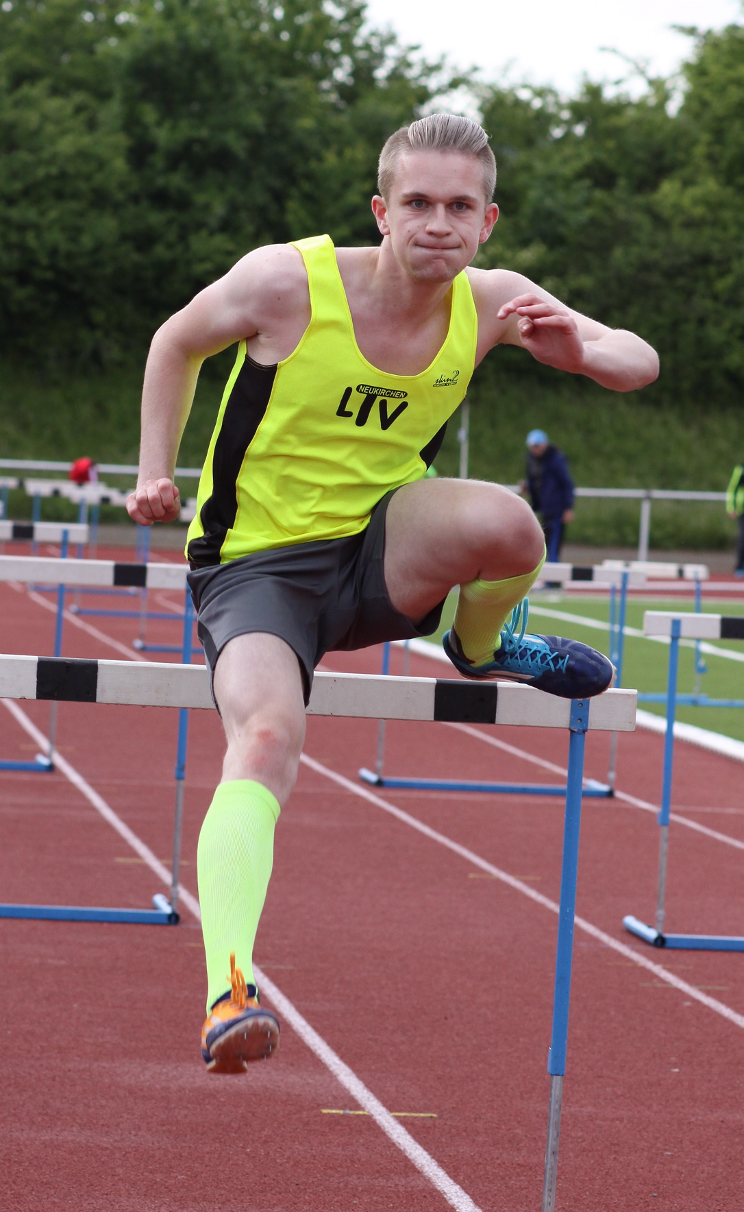 Trotz Abistress und regennasser Bahn lief Simon Happel (LTV) in 12,01 über 100 Meter der Männer an die 12-Sekunden-Grenze heran. Zuvor dominierte der 19-Jährige in 18,10 Sekunden die Kreismeisterschaft über 110 Meter Hürden. Weitere LTV-Athleten sind bereits in Form. In 25,37 Sekunden sprintete Hannes Riebeling zum Sieg über 200 Meter und erinnerte mit 2,90 m im Stabhochsprung an die Glanzzeit seines Bruders Magnus Riebeling - Kreisrekordhalter mit 4,23 m. Philipp Schlemmer reichten 5,71 m zum Erfolg im Weitsprung.