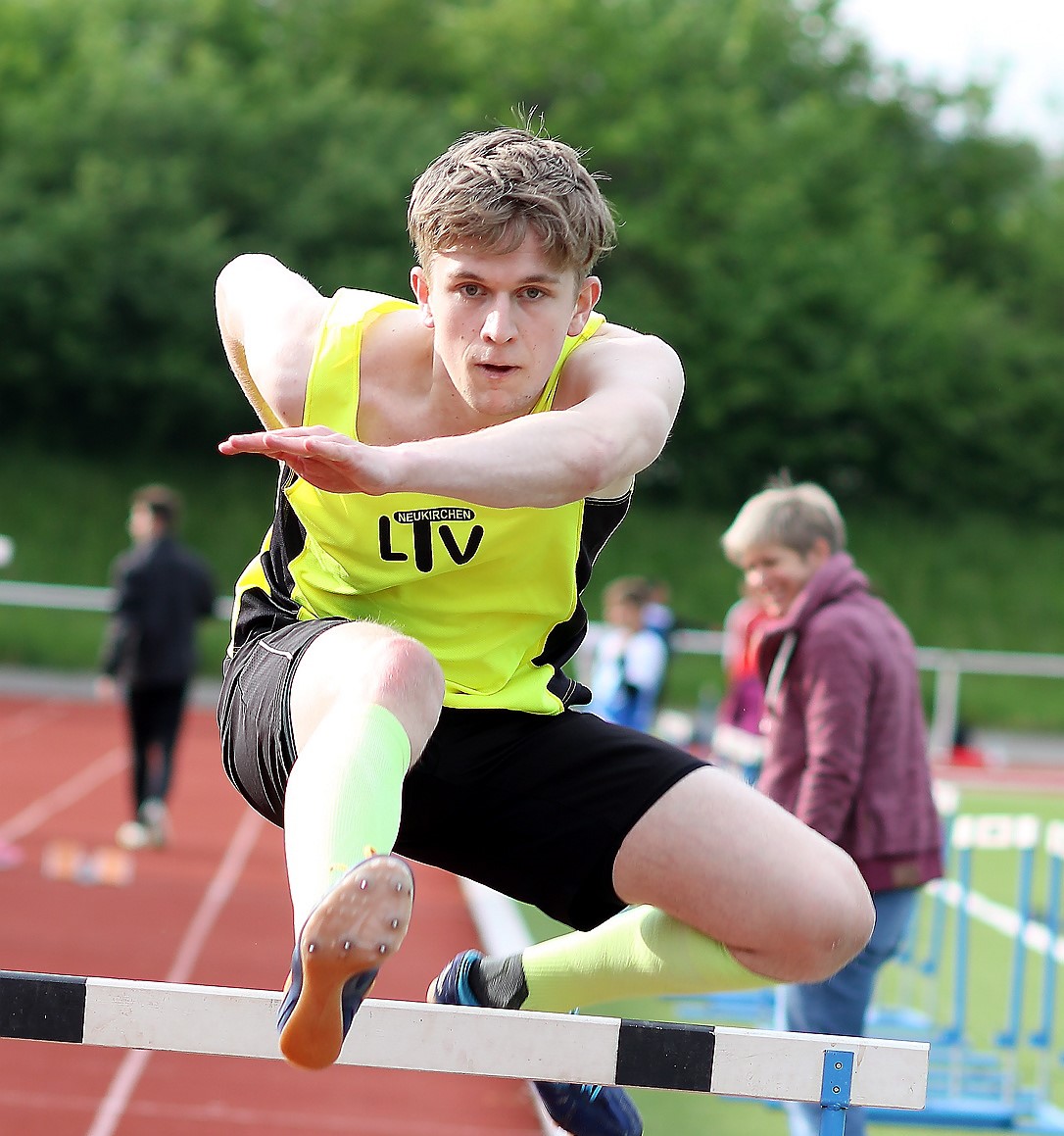 In 18,57 Sekunden verteidigte Simon Happel (LTV) bei dem als Kreis-Meisterschaft ausgeschriebenen Lauf über 110 Meter Hürden der Männer seinen Titel vom letzten Jahr und ist jetzt hinter Zehnkämpfer Jan Volkmar (Eschweger TSV) Zweiter in Nordhessen. In 68,66 Sekunden gelang Tobias Stang (MT) erfolgreiches Comeback über 400 Meter Hürden.