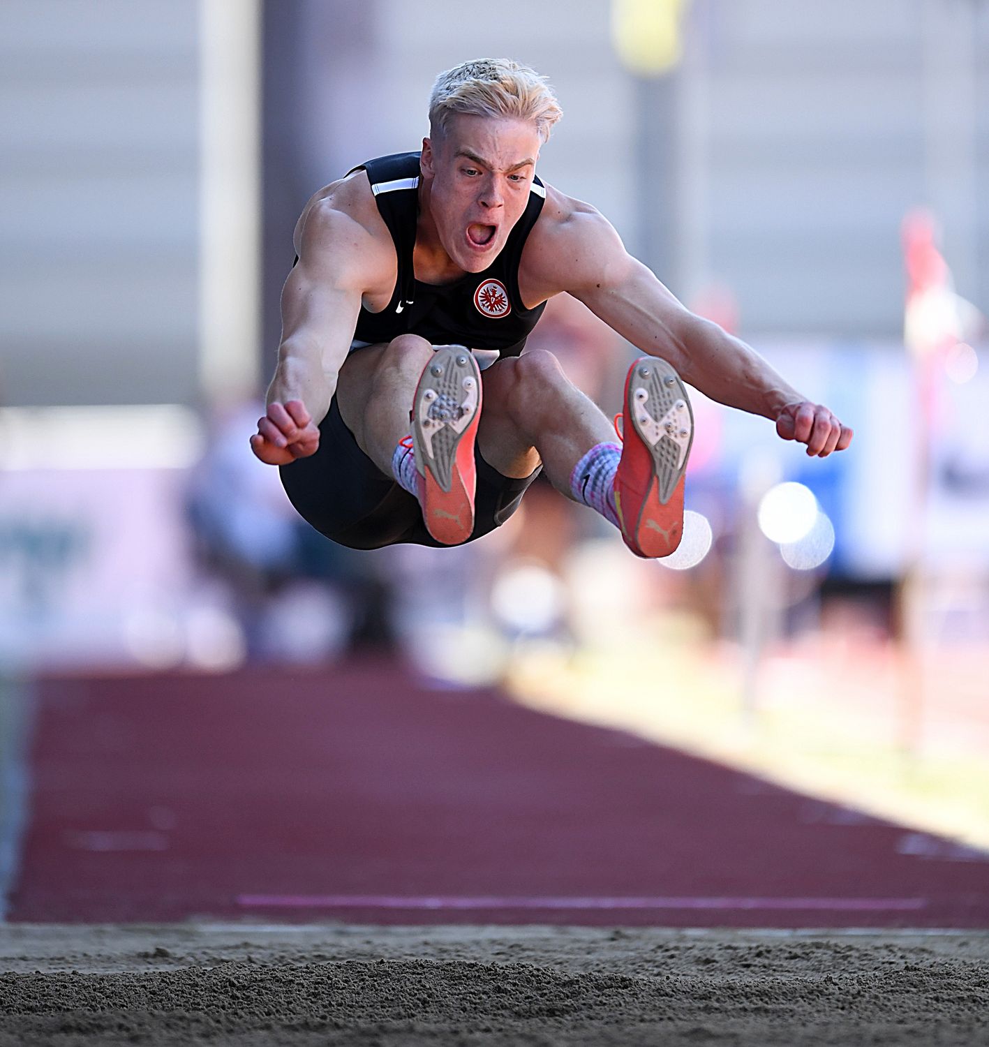 Mit Jannis Wolff ist noch ein weiterer Eintrachtler gut im Rennen. Der Neuzugang beim Verein mit dem Adler auf dem Trikot sorgte gleich in der ersten Disziplin für einen Paukenschlag, als er mit ganz schnelle 10,67 Sekunden den 100-Meter-Tagessieg auf den Tartanbelag zauberte.Es folgten mit 6,99 Metern (Weitsprung) und 13,12 Metern (Kugel) noch zwei weitere „SB“ an diesem brütend heißem Tag. Noch besser lief es für den ehemaligen Aachener bei der Höhenjagd und bei den abschließenden 400 Metern, bedeuteten die hier erzielten 1,96 Meter und 49,35 Sekunden sogar neue persönliche Bestmarken. Somit „übernachtet“ Wolff mit 4042 Zählern auf einem siebten Platz und kann weiterhin vom ersten „8000er“ träumen.