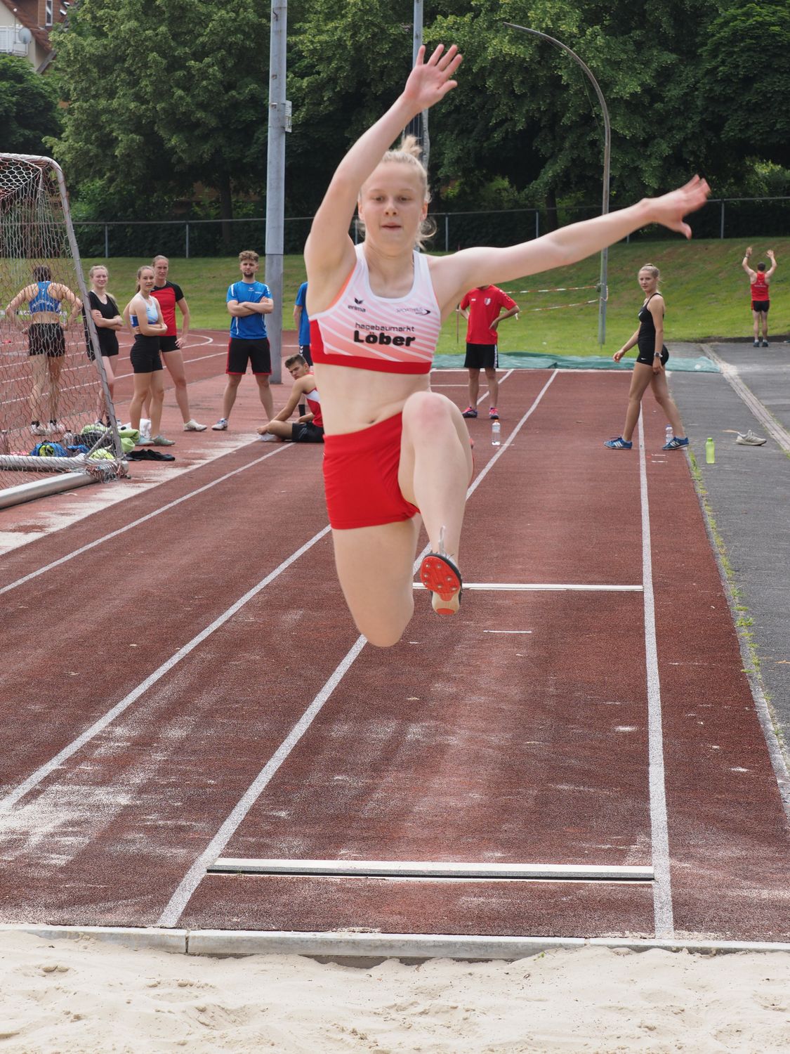 Im Weitsprung der Frauen ließ Anna-Marie Finis (TSV Hombressen) zu keinem Zeitpunkt Zweifel an ihren Siegambitionen aufkommen. Gleich im ersten Durchgang setzte sie mit 5,24 Metern eine neue persönliche Bestweite in die Sandgrube. Nachdem sich Titelverteidigerin Vanessa Schwedes (SV Espenau) im zweiten Durchgang auf 5,10 Meter gesteigert hatte, legte Finis sogar noch einmal nach. Bis auf 5,31 Meter mussten die Kampfrichter das Maßband ausrollen. Das ist die beste Weite einer Springerin aus dem Kreis Hofgeismar seit 2017.