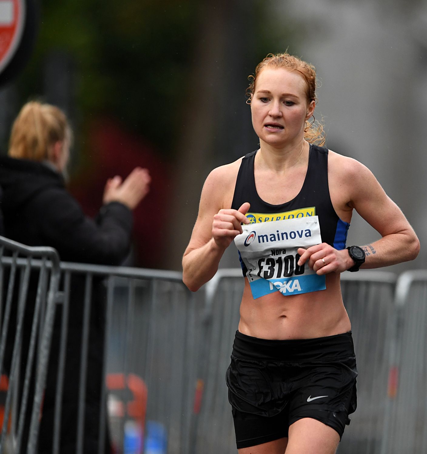 Auch im Feld der Frauen wurde „hessisches“ Edelmetall komplett neu vergeben, da die Top-Drei des Vorjahres nicht am Start waren. Die drei schnellsten Hessinnen blieben alle unter der Drei-Stunden-Schallmauer. Den Anfang machte mit 2:46:40 Stunden Anna Starostzik (Spiridon Frankfurt/W35). Knapp zwei Minuten später machte Nora Holesch (W30) mit 2:48:36 Stunden den Spiridon-Doppelsieg perfekt. Für Lena Ritzel (VfL 1860 Marburg/WHK) leuchteten in der Festhalle 2:57:59 Stunden auf der Anzeigetafel auf.