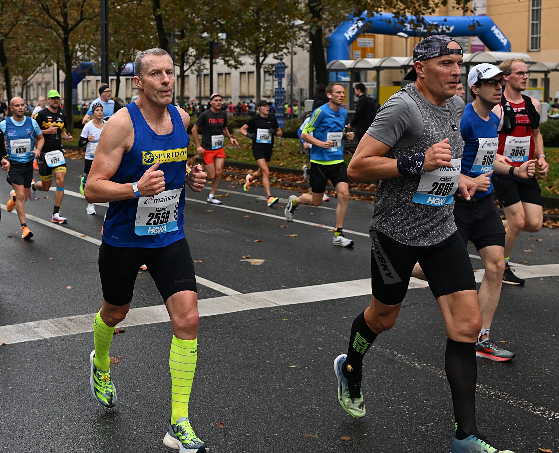 Bei den Männern trat Jannik Ernst (TV Waldstraße Wiesbaden/M30) die Nachfolge von Vorjahressieger Gabriel Lautenschlager (LG Wettenberg) an. Der Mann aus der Landeshauptstadt überquerte nach 2:27:28 Stunden die Ziellinie in der Frankfurter Festhalle und schob sich damit in der deutschen Jahresbestenliste gerade so unter die Top-50. Schnellster Hesse ist dort aktuell mit 2:28:58 Stunden Robert Unger. Der Läufer im Trikot von Spiridon Frankfurt erzielte diese Marke erst Anfang Oktober beim Köln-Marathon. Vier Wochen später stand Unger bei seinem „Heim-Rennen“ erneut an der Startlinie, wurde in der HM-Wertung Gesamtzweiter und gewann die Wertung der M40. Das Podium aus HLV-Sicht komplettierte Robin Schmidt (TSV Niederelsungen), der mit 2:33:51 Stunden in der MHK nichts anbrennen ließ.