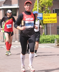 Antje Krause hat bei der EM im 24-Stunden-Straßenlauf im niederländischen Steenbergen mit dem deutschen Frauenteam die Bronzemedaille gewonnen. Die Bedingungen in dem kleinen Städtchen in Nord-Brabant waren alles andere als optimal. Zwar war der Kurs mit seiner 2.314 Meter langen Runde im Grunde perfekt für diese Disziplin, Steigungen waren Fehlanzeige und nur wenige Bremswellen auf den Straßen behinderten die Läufer. Aber der Wetterbericht behielt Recht. War es mittags zum Start noch heiter bis wolkig, fing gegen Abend der Regen an. Die ganze Nacht schüttete es und starker Wind machte es den Teilnehmern noch schwerer. Erst gegen Rennschluss ließen die Regenschauer nach. Umso glücklicher war die Marburgerin über das erfolgreiche Ende. Sehr gute 220,221 Kilometer wurden für sie gemessen. Das bedeutetet Platz sieben in Europa und Rang 13 bei den gleichzeitig ausgetragenen Weltmeisterschaften.