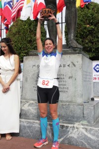 Start zu einem der härtesten Ultrarennen ist um sieben Uhr morgens unterhalb der Akropolis. Vor allem das Durchkommen zählt, um den emotionalen Zieleinlauf mit Berührung des Fußes der Statue des Sparterkönigs Leonidas erleben und den Olivenkranz und die Schale mit Wasser in Empfang nehmen zu können. Für Antje Krause lief es sehr gut, wirkliche Tiefs blieben bei der Marburgerin aus. Auch als nach gut 140 Kilometern der etwa 1.200 Meter hohe Sangas-Pass auf einem steinigen Hirtenpfad im Dunkel der Nacht überquert werden musste. In der Dämmerung war sie bereits auf den hügeligen Straßen in Richtung Ziel unterwegs und kam als 25. der 274 Gesamtfinisher und sechste Frau ins Ziel.