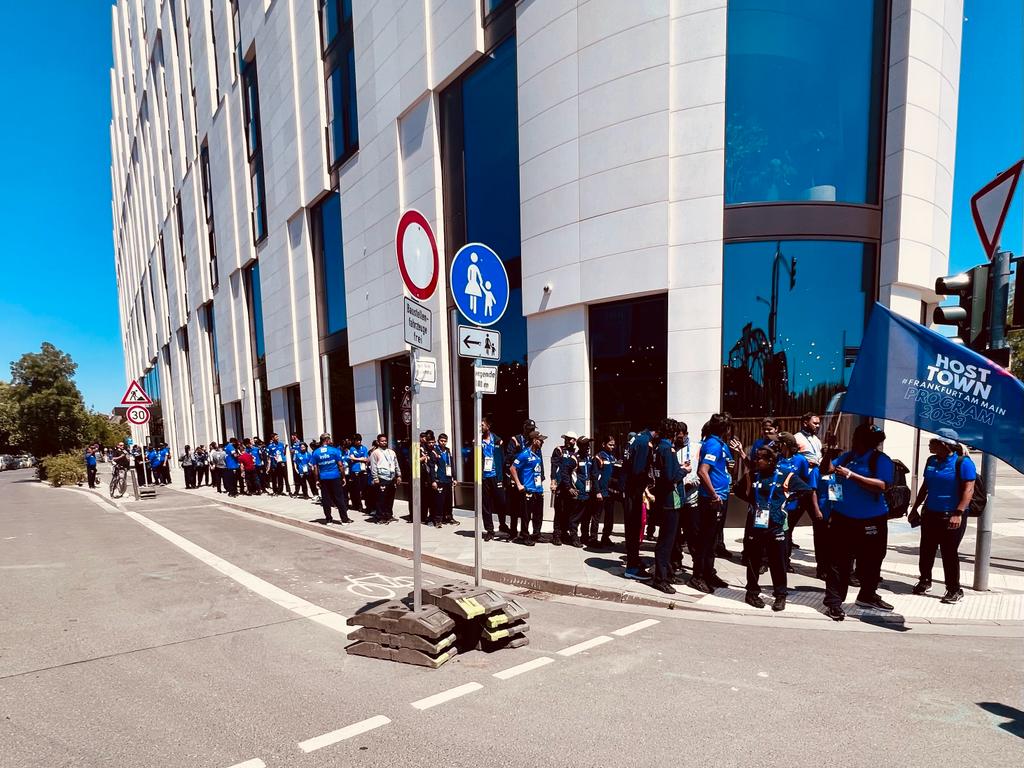 Auch die Stadt Frankfurt war Teil des Programms und empfing vom 12.-15.06. die fast 300 personenstarke Delegation aus Indien. Mitarbeiter:innen des HLV engagierten sich in dieser Zeit als Volunteer und waren somit mittendrin in einem der größten Sportevents des Jahres. Für die Inder:innen wurde von den Verantwortichen der Stadt Frankfurt ein tolles Programm organisiert: Neben einem olympischen Fackellauf am Tag der Inklusion (13.06.), gab es auch Ausflüge, natürlich Trainingsangebote und eine große Abschlussfeier, bevor die Sportler:innen und Betreuer:innen ihre Weiterreise nach Berlin antraten.