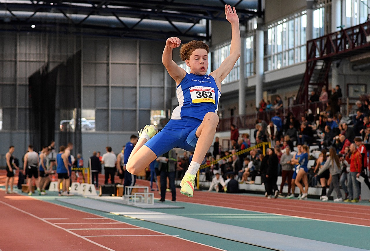Ein bemerkenswertes Double lieferte in seinem ersten U18-Jahr Andrii Shymchuk ab, der nach seiner Flucht aus der Ukraine beim Königsteiner LV eine sportliche Heimat gefunden hat. Am ersten HM-Tag gewann Andrii in 51,24 Sekunden die 400 Meter ganz sicher vor Tom Gerstengarbe (LG Wettenberg/53,23 sec.). Am Sonntag folgte dann der nächste Gold-Streich über die 800 Meter. Nachdem Tristan Kaufhold (SSC Hanau-Rodenbach) auf den beiden ersten Runde fürs Tempo gesorgt hatte, übernahm dann Shymchuk die Führung und verteidigte sie bis ins Ziel. Für den KLVler leuchteten starke 1:56,52 Minuten auf der Anzeigetafel auf. Kaufhold kam auf 1:56,93 Minuten hatte durch seinen Sieg über 1500 Meter (4:07,41 min.) aber ebenfalls einen HM-Titel im Gepäck. Die 3000 Meter gingen mit 9:07,55 Minuten Clemens Bauer (TV Waldstraße Wiesbaden), der auch noch über 1500 Meter (2. mit 4:16,93 min.) unterwegs war. Über die 60 Meter Hürden gab es auf den ersten Blick ein totes Rennen, wurden Mattis Wolf (ASC Darmstadt) und Finn Rode (TV Wächtersbach) doch beide mit 8,38 Sekunden gestoppt. Nach Auswertung des Zielfotos wurde dann der ASCler auf „1“ gesetzt. Im Hochsprung flogen Philipp Romisch (Eintracht Frankfurt) und Carl Wiegand (TV Groß-Gerau) beide bei 1,78 Metern über die Latte. Die geringere Anzahl der Fehlversuche brachte Romisch dann den Hessentitel. Der Eintrachtler durfte beim Weitsprung (6,10 m) dann noch auf die zweite Stufe des Siegertreppchens klettern. Gold bei der Weitenjagd ging mit 6,40 Metern an Moritz Becker (Wiesbadener LV). Beim Stabhochsprung trug sich Luis Bethke (LC Olympia Lorsch/3,70 m) in die Siegerliste ein. Beim Dreisprung, leider nur mit zwei Startern besetzt, gewann Henning Judt (TV Groß-Gerau/12,74 m). Im Kugelstoßen lautete die finale Reihenfolge Ben Gerlach (LG OVAG Friedberg-Fauerbach/13,93 m) vor Steven Langendorf (TSV Hessen-Frankenberg/13,69 m) und Nicolas Ziegler (Eintracht Frankfurt/13,67 m).