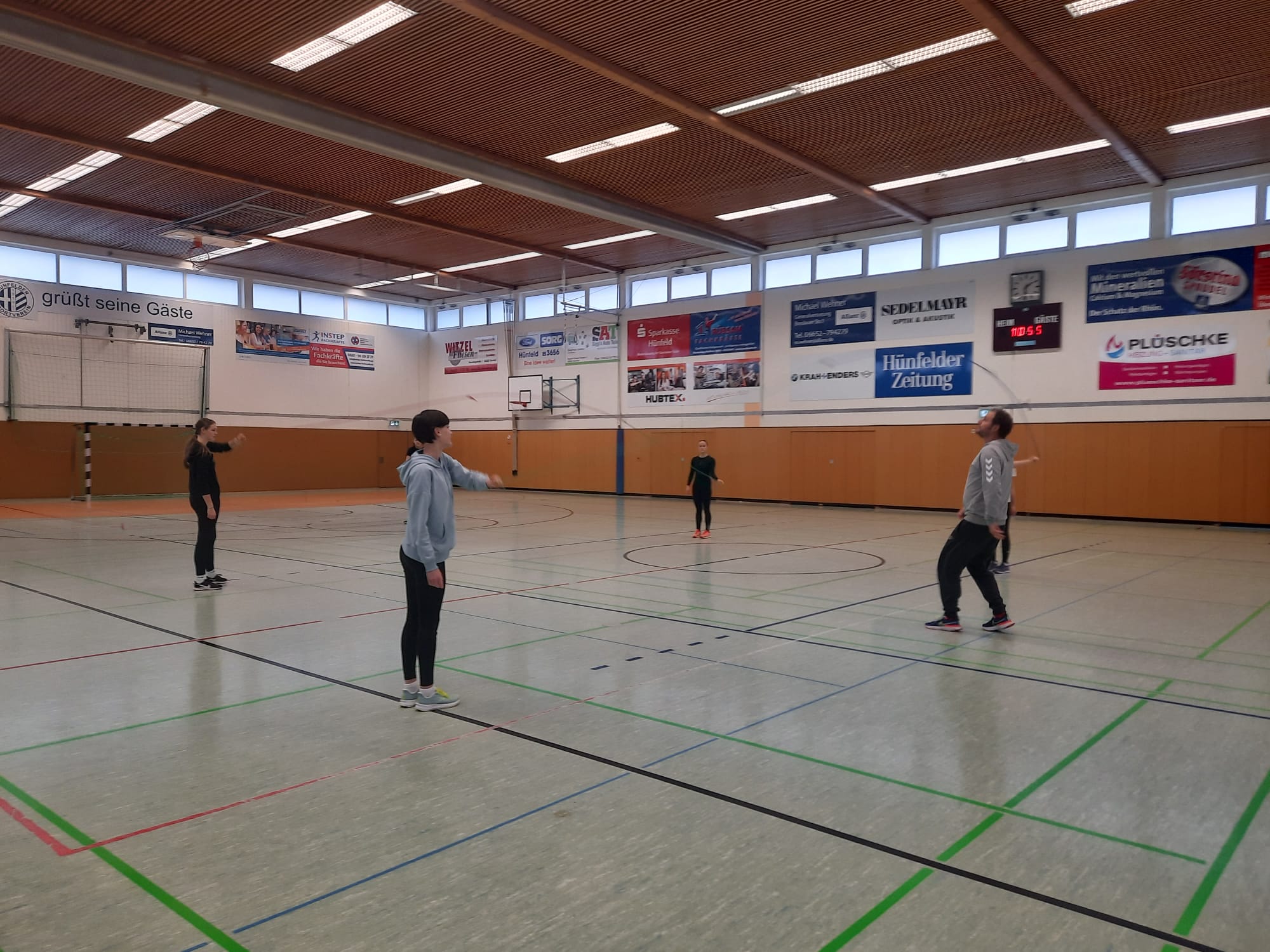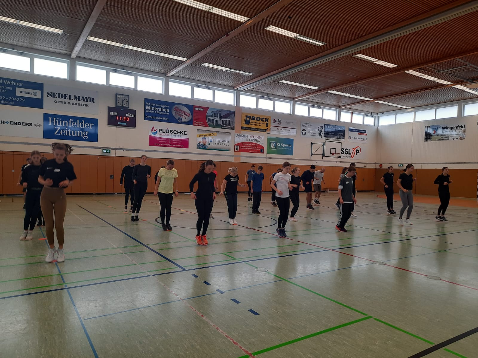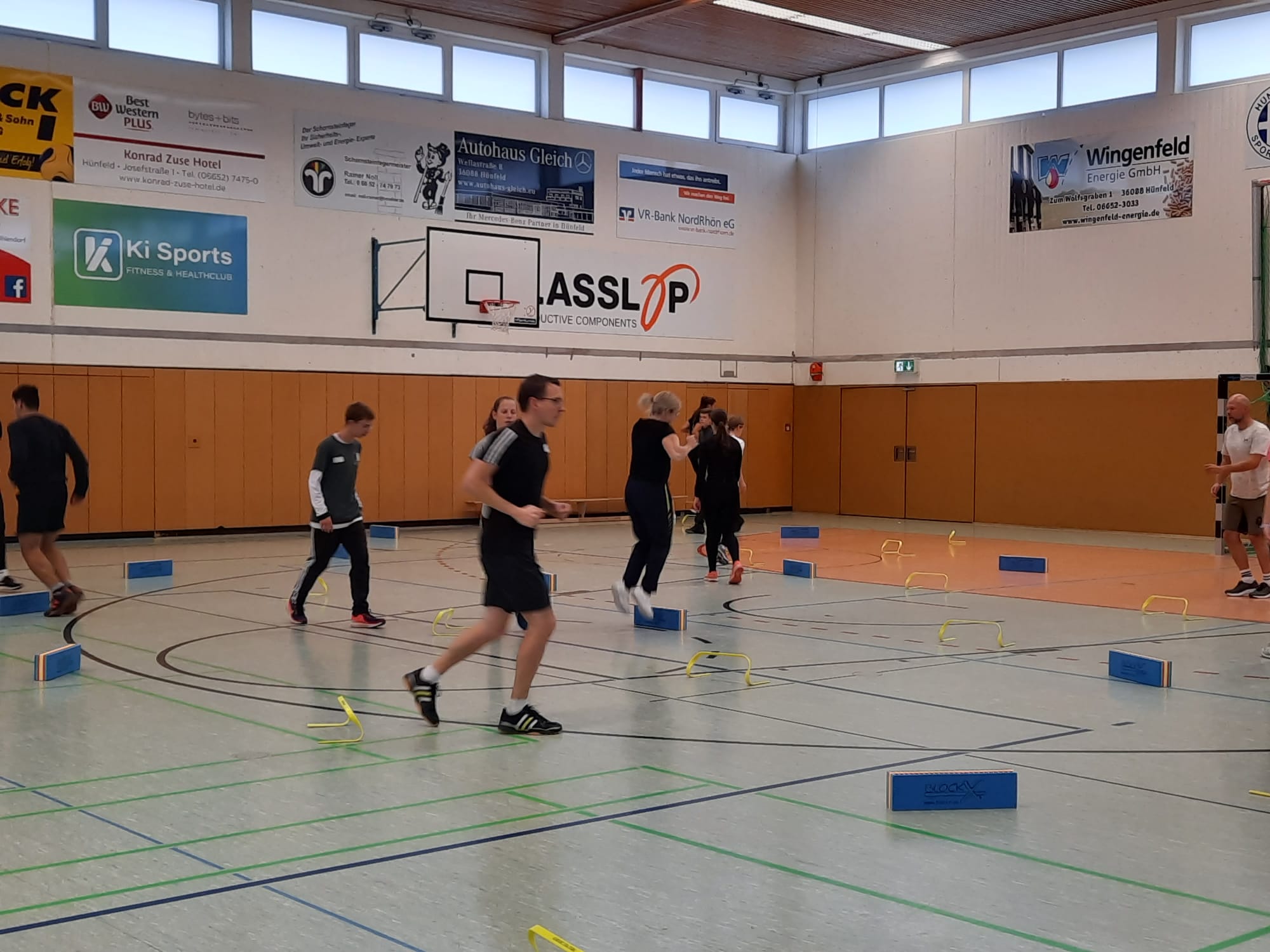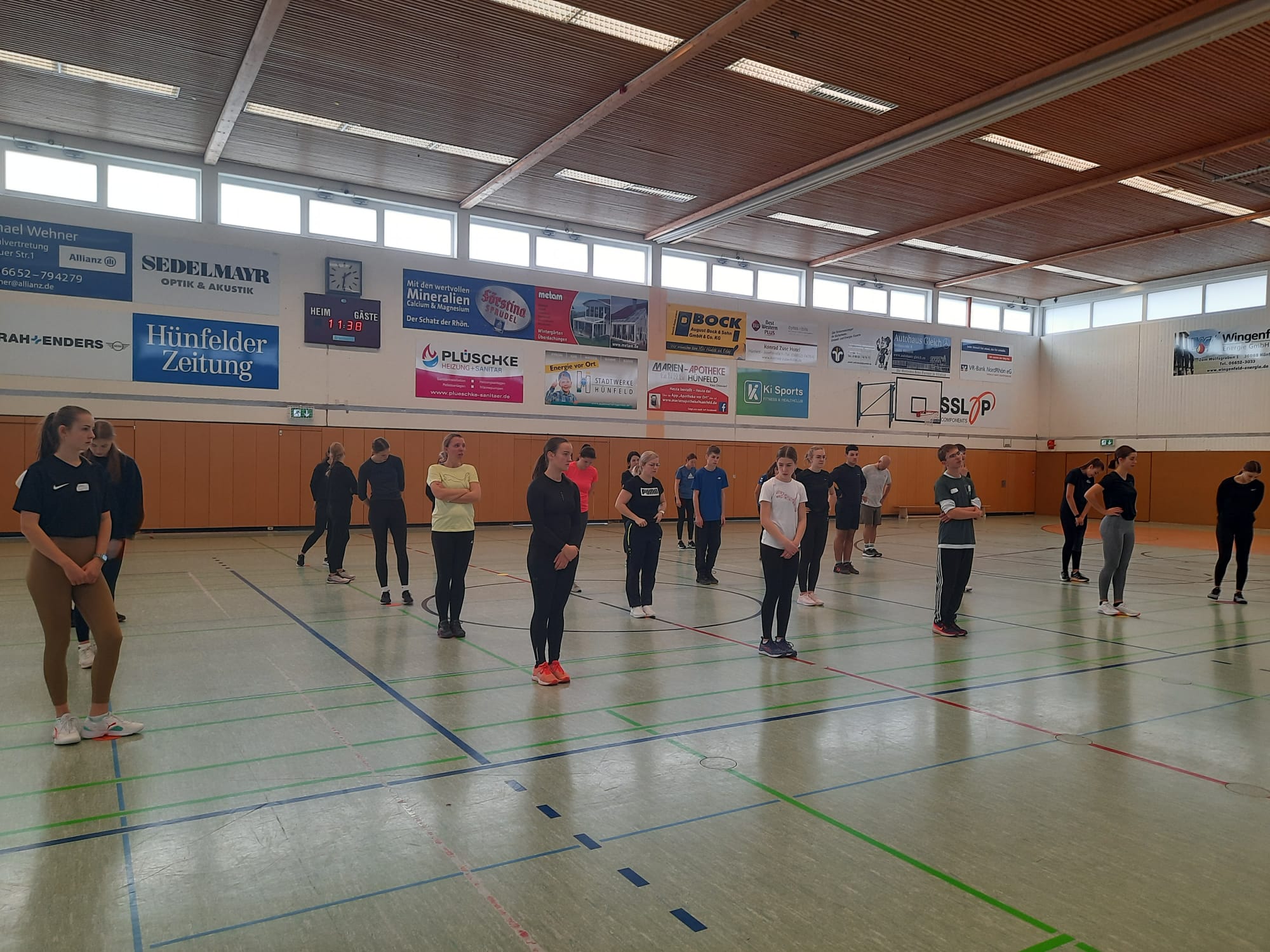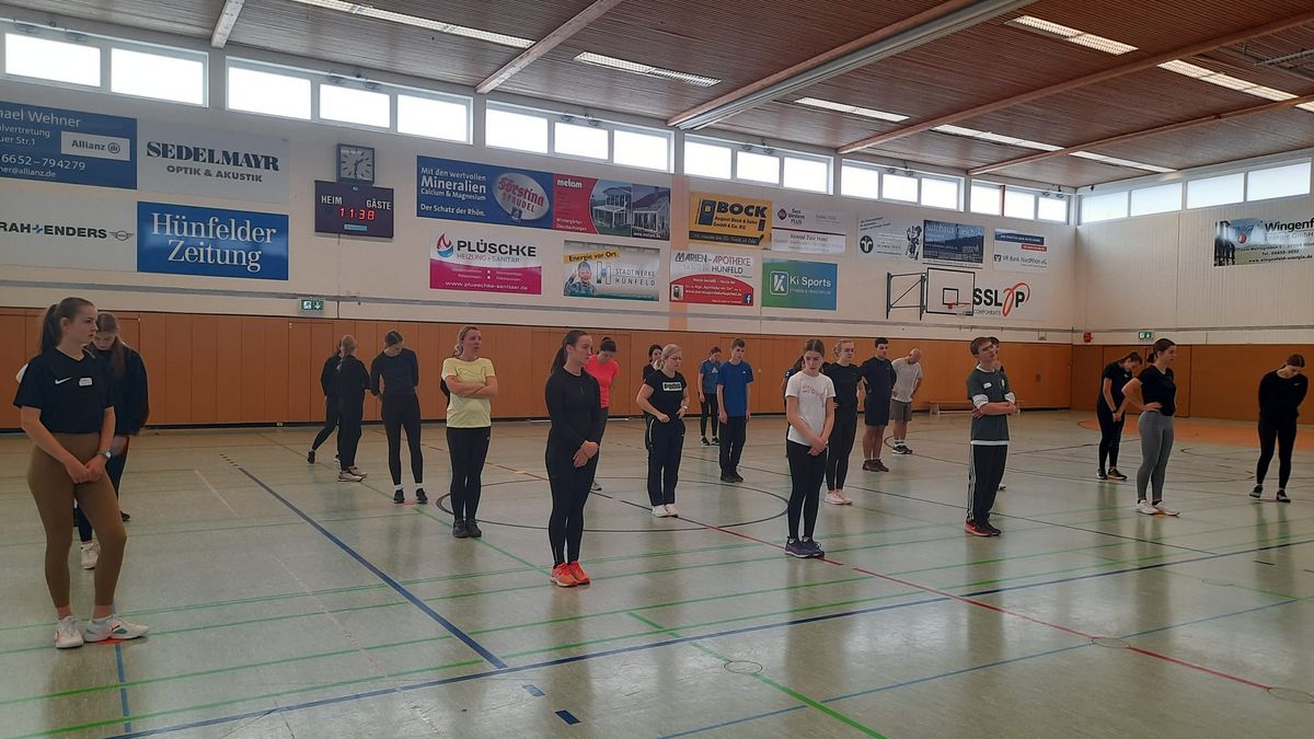 Los ging es am vergangenen Montag und Mittwoch mit zwei Online-Ausbildungseinheiten von jeweils 17:30 bis 20:30 Uhr. Diesen folgten dann am Samstag und Sonntag zwei Präsenz-Einheiten in der Kreissporthalle 1 – einer Dreifeldhalle – in Hünfeld statt. Daneben wurde die Lounge des Hünfelder Sportvereins genutzt.