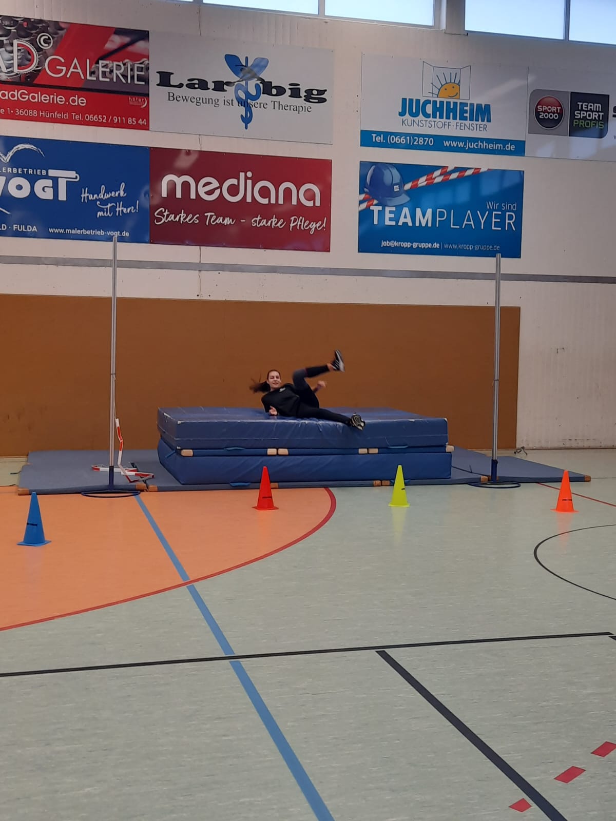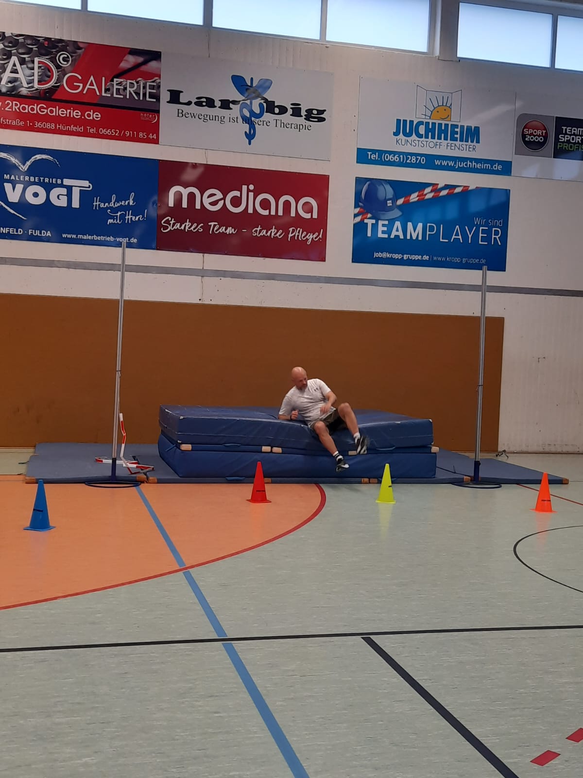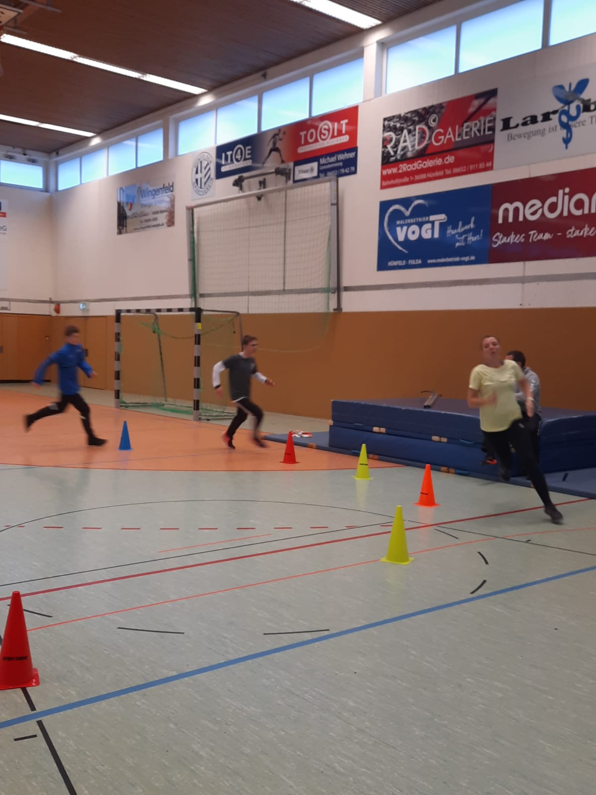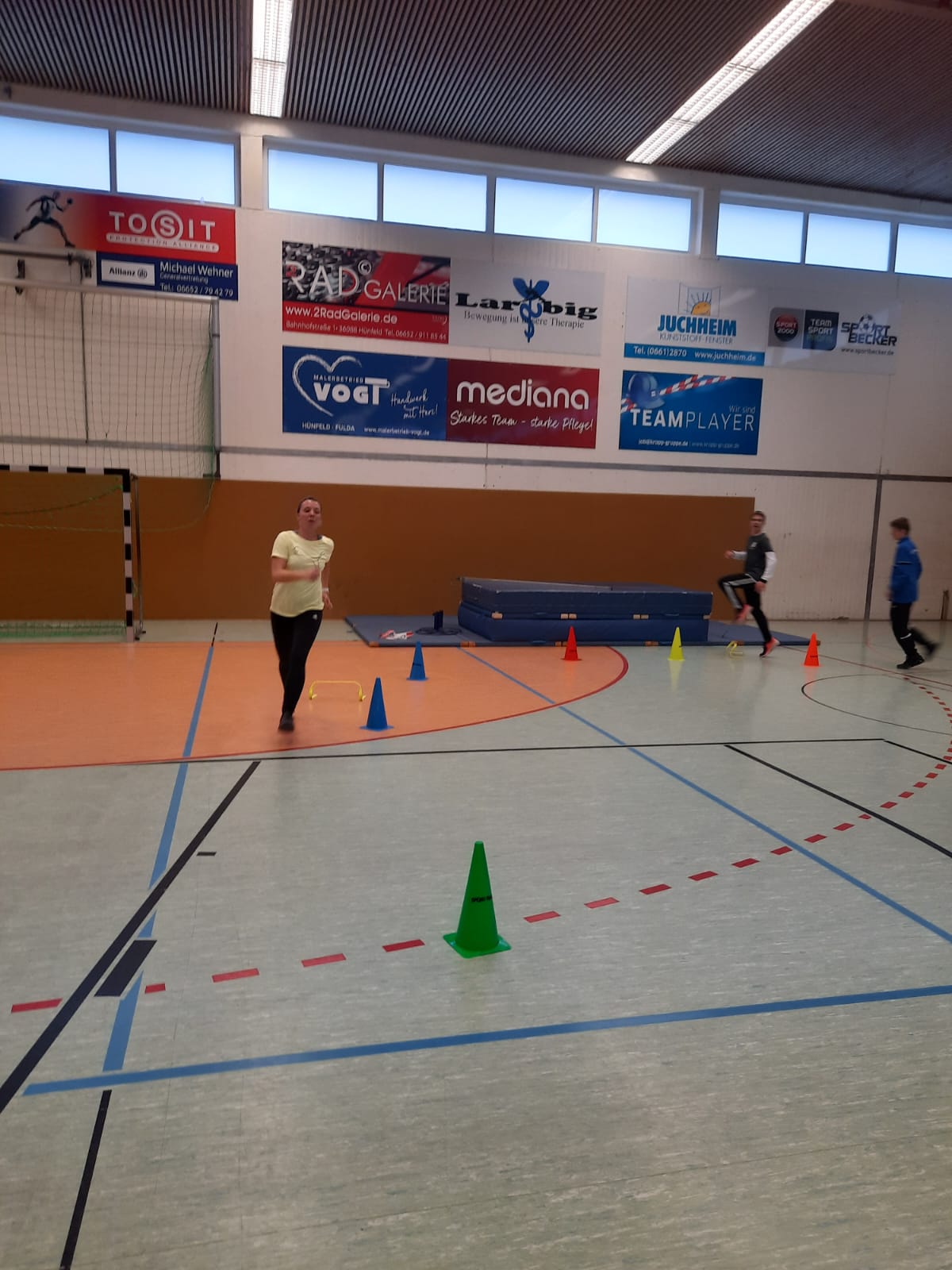 Los ging es am vergangenen Montag und Mittwoch mit zwei Online-Ausbildungseinheiten von jeweils 17:30 bis 20:30 Uhr. Diesen folgten dann am Samstag und Sonntag zwei Präsenz-Einheiten in der Kreissporthalle 1 – einer Dreifeldhalle – in Hünfeld statt. Daneben wurde die Lounge des Hünfelder Sportvereins genutzt.