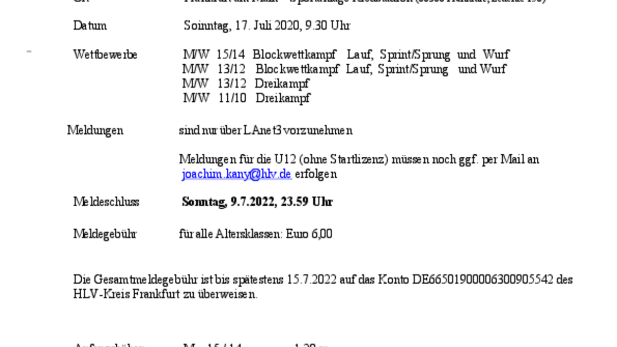 der Jugend U 16 - U 14 und Mehrkampf der Kinder U 12 am 17. Juli 2022 in Frankfurt am Main – Sportanlage Riedstadion