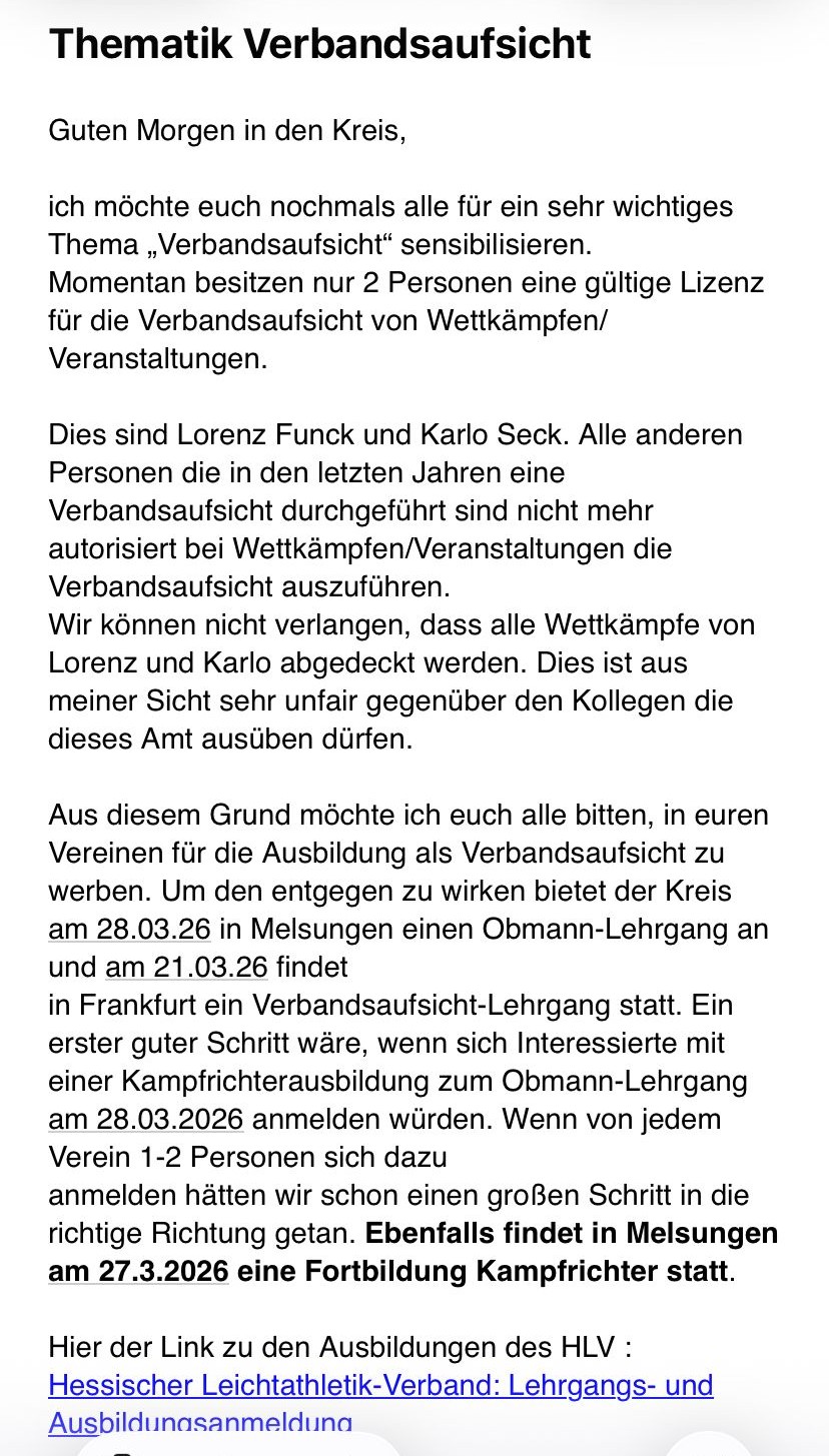 Zudem muss man, ebenfalls ab diesem Jahr, zu allen Spezial-Ausbildungen (Obleute, Schiedsrichter,