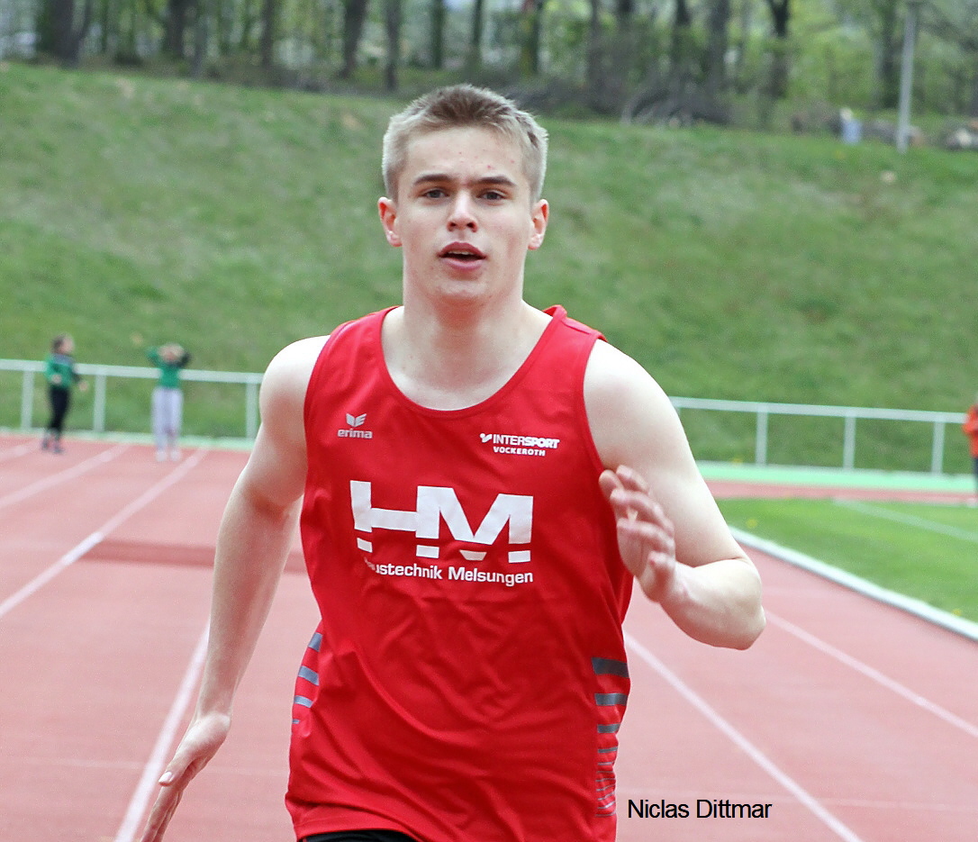 Souverän gewann Niclas Dittmar (MT) in 56,02 Sekunden den Zweikampf im Kurzsprint der U 18. Über 150 Meter bezwang der Melsunger Gesamtschüler Kjell Jona Credner (VfL Altenstadt) in 17,69 zu 18,42 Sekunden und legte unter sechs Athleten in 38,33 auch die Tages-Bestzeit über 300 Meter auf die Tartanbahn.
