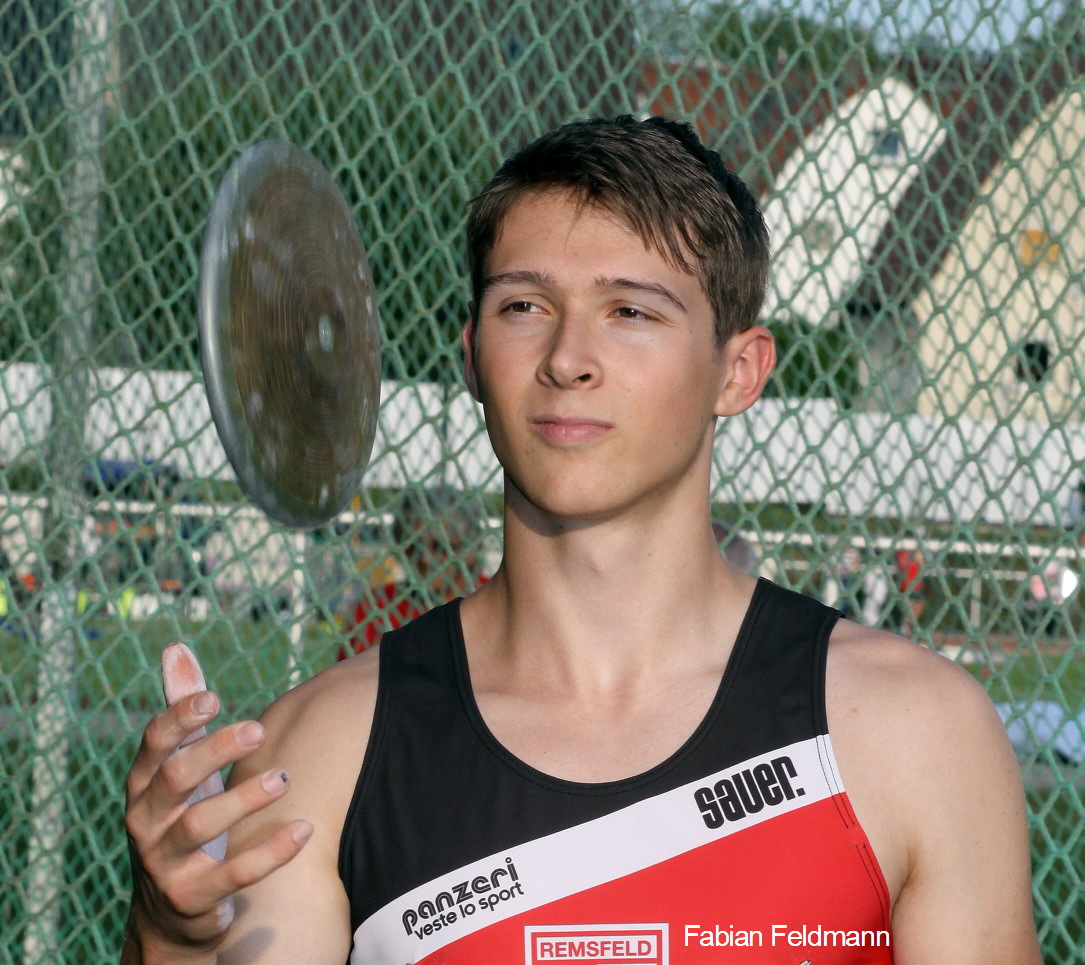 Gilfershausen - Die Top-20 des DLV sind erreicht. Einen Ruck in die bundesdeutsche Elite im Diskuswerfen der männlichen Jugend U 20 gelang Fabian Feldmann (TSV Remsfeld) bei den im Rahmen der Bahneröffnung der LG Alheimer auf die Anlagen des RKV Bebra im Stadtteil Gilfershausen ausgelagernden Wurf-Disziplinen. Nach 46,47 m zum Auftakt steigerte sich der hessische Jugendmeister aus Hausen mit der 1,75 Kilogramm schweren Scheibe der auf 49,57 m und ist jetzt 18. im DLV sowie hinter Marius Karges (Eintracht Frankfurt) Zweiter in Hessen. Jetzt ist die 50-Meter-Marke das erklärte Ziel. Bei ihren ersten Drehungen im Diskusring reichten den Remsfelder Talenten Hannes Fenner und Jakob Zülch 27,49 m bzw. 25,99 m zu einem Doppelsieg in der M 13 (750 g).