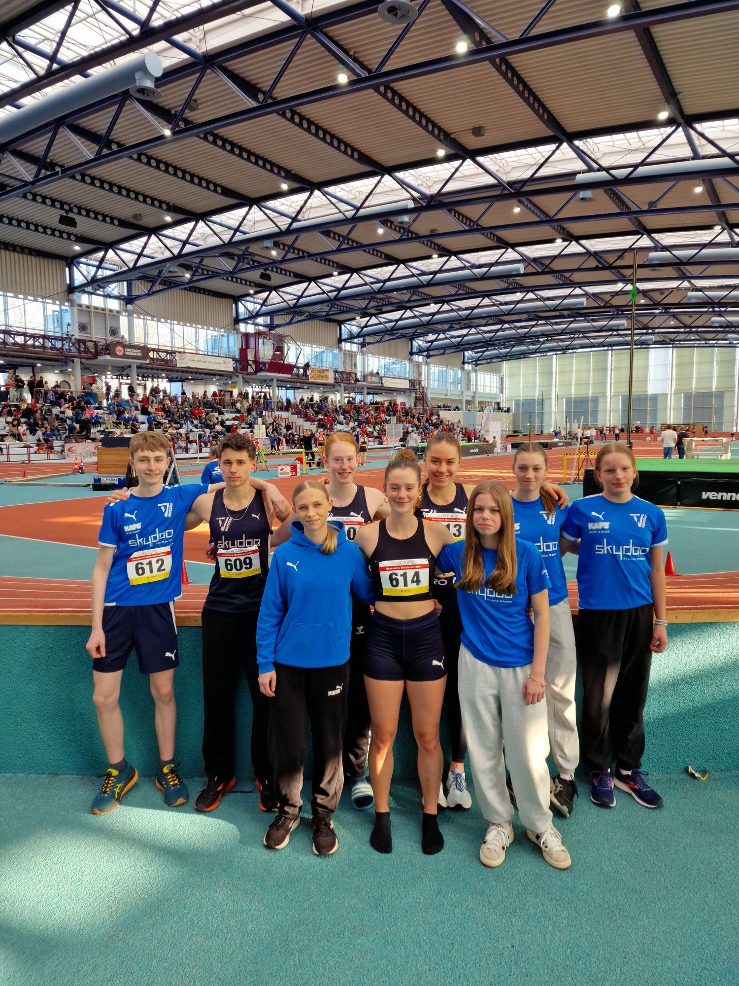 „Die Richtung stimmt“ war das Resümee von Trainer Christoph Arampatzis, der sich die Leistungen der U18- und U16-Athleten an diesem Wochenende genau anschaute. Finn Peters (M15) lieferte im Weitsprung der hessischen Konkurrenz eine starke Sprungserie ab und knüpfte mit Platz 5 und 5,42m an die vielversprechenden Leistungen zum Ende der letzten Saison an. Sein Teamkollege Diego Panezi (M15) probierte sich erstmalig über die doch eher unbequeme Sprintdistanz von 300m aus. Mit sehr guten 41,44s schaffte er es überraschend auf Rang 2 und zeigte sich mit dem Vizemeister-Titel mehr als zufrieden. Der „Neu-U18“-Athlet Daniel Benner ging eine Woche vor seinen eigenen Hessischen Meisterschaften in der älteren Altersklasse U20 über 200m an den Start. Auch hier zeigte sich die gute Wintervorbereitung und Daniel konnte seine bis dahin stehende Bestleistung deutlich verbessern. Mit 23,70s sprintete er auf den neunten Rang der U20. Die heutigen Leistungen der Heuchelheimer Athleten in der Frankfurter Leichtathletik-Halle lassen auf jeden Fall auf eine spannende Saison 2025 hoffen.