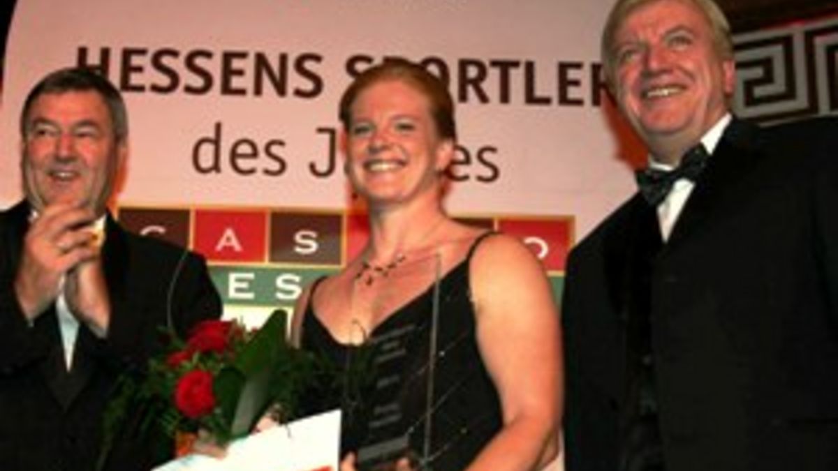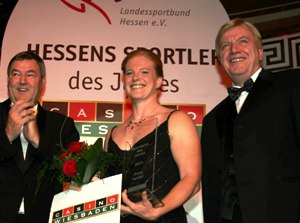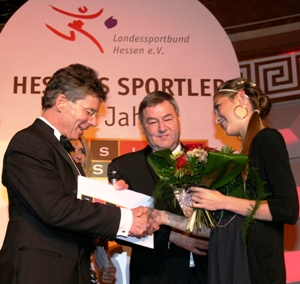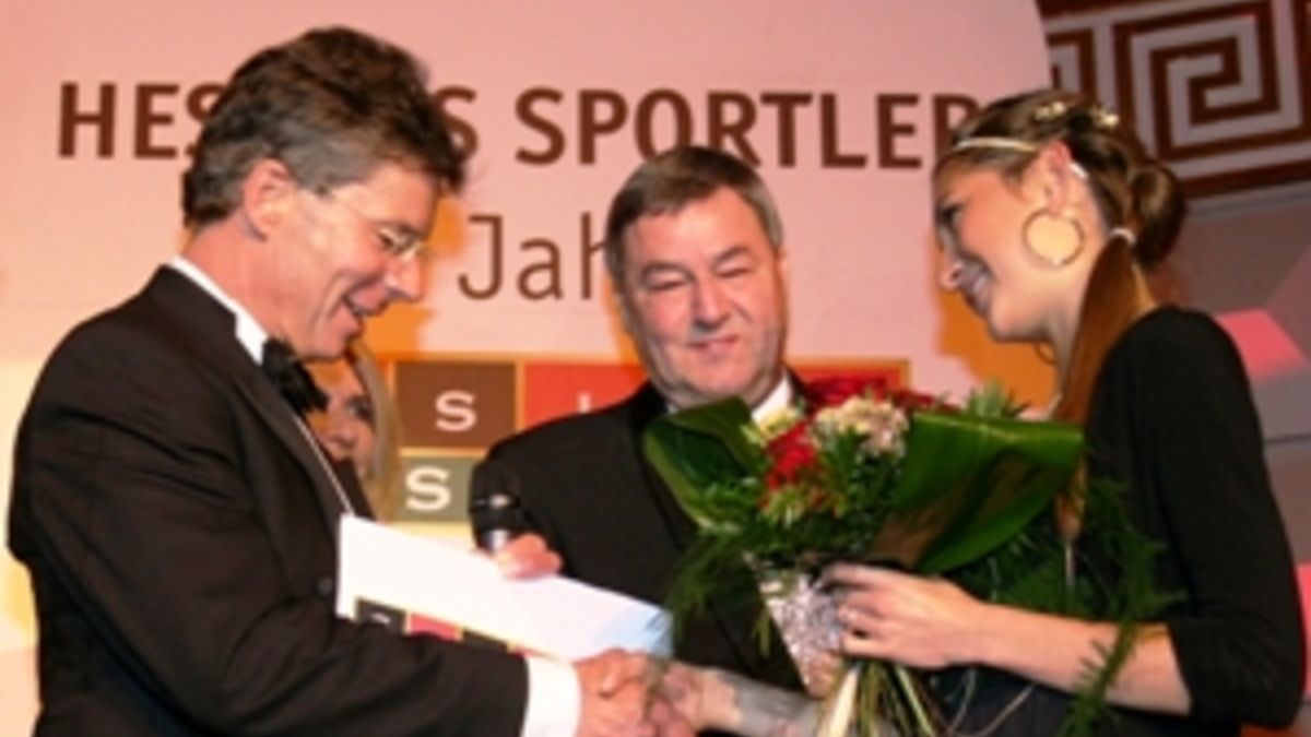 Der Hessische Leichtathletik-Verband (HLV) hatte bei der 10. Olympischen Ballnacht des Landessportbundes Hessen (lsb h) im Wiesbadener Kurhaus und der damit verbundenen Präsentation der „Sportler des Jahres“ einen großen Auftritt. Über die Ehrung freuten sich nämlich Hammerwurf-Weltrekordhalterin Betty Heidler (Sportlerin des Jahres), Hindernisläuferin Gesa Krause (Newcomerin des Jahres) sowie Michael Deyhle in der Kategorie Trainer des Jahres. Sie alle sind erfolgreiche sportliche Leistungsträger, für viele zugleich Vorbilder in Sachen Fair Play, Durchhaltevermögen, Einsatzbereitschaft und Teamgeist. Gewählt worden waren die Sportlerinnen und Sportler des Jahres von einer Jury, der Verlagsleiter und Chefredakteure hessischer Medien angehörten. Das Preisgeld in Höhe von insgesamt 5.500 Euro (jeweils 1.000 Euro für die Sportler, Mannschaft und Trainer des Jahres, sowie 500 Euro für den Newcomer) wurde vom Casino Wiesbaden zur Verfügung gestellt - Geschäftsführer Thomas von Stenglin moderierte die Preisverleihung.<ENDE/>