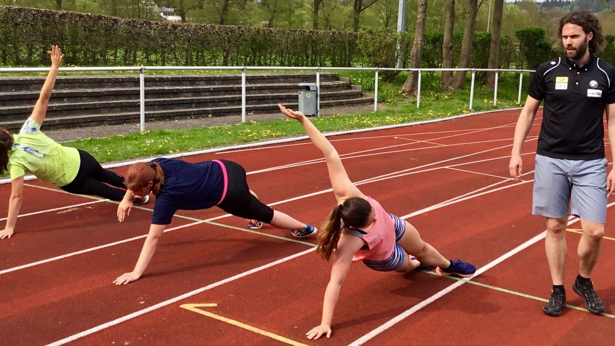 In Vorbereitung auf die Freiluftsaison lud Landestrainer Michael Kollmar (TSV Frankenberg) zum Blockgespräch Kugel/Diskus ins heimische Ederstadion ein. Als Dozent konnte Kollmar für den Workshop Christopher Braun gewinnen. Der Bob-Bundestrainer am Stützpunkt Winterberg stellte ein „functional movement“ Programm vor, bei dem die Teilnehmer nach einer ausführlichen theoretischen Einweisung mit Videovorführung der einzelnen Übungen auch in der Praxis ordentlich gefordert wurden. Bei diversen Übungen mit unterschiedlichen Schwierigkeitsgraden kamen die Workshop-Teilnehmer ordentlich ins Schwitzen. Ziel des „functional movement“ Programms war es, die Trainingselemente Aufwärmung, Kräftigung, Beweglichkeit, Körperstabilität und Koordination sinnvoll zu kombinieren. Damit sollte eine effizientere Durchführung als das „übliche“ Nacheinander von Aufwärmung, Dehnung und Stabi erreicht und vorgestellt werden. Eine Videoanalyse half, manchen Fehler aufzudecken. Trotz diverser Neuerungen für die Teilnehmer war Dozent Braun vom guten Trainingszustand der Athleten beeindruckt.