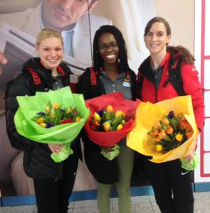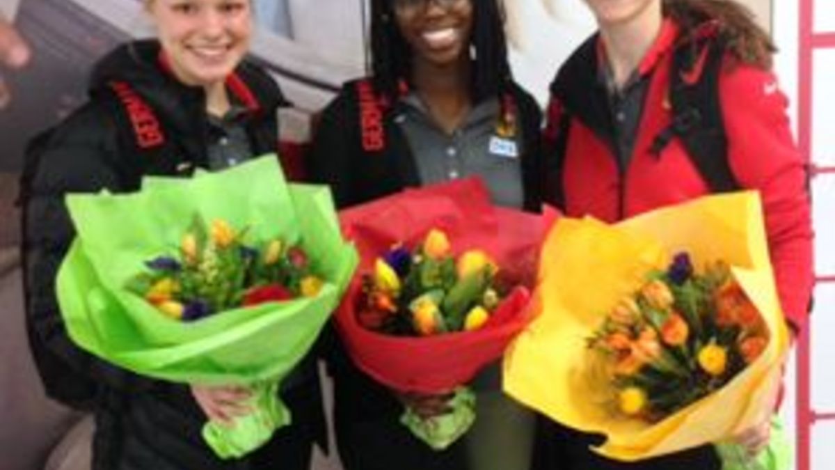 Blumen am Flughafen: EM-Teilnehmerinnen zurück