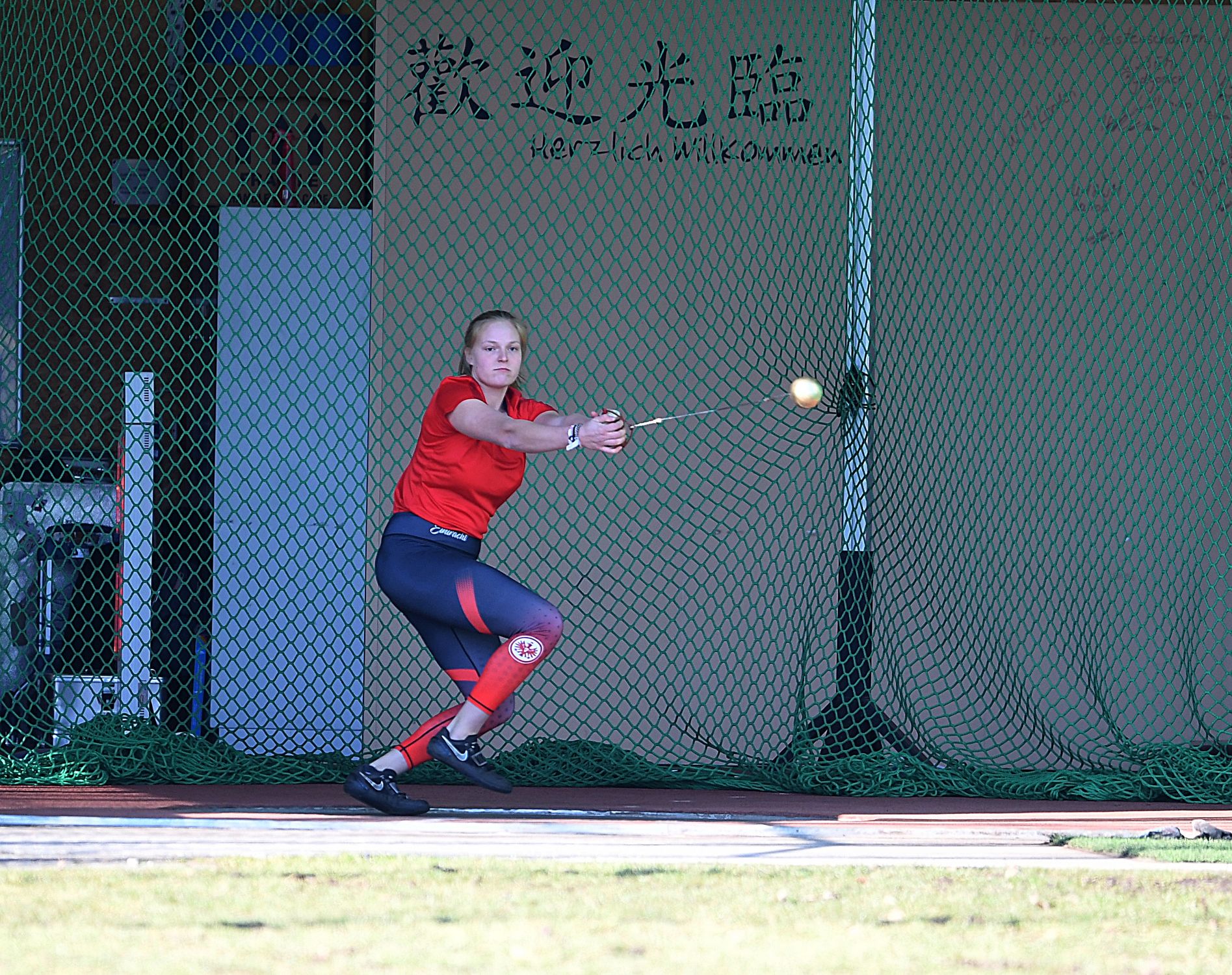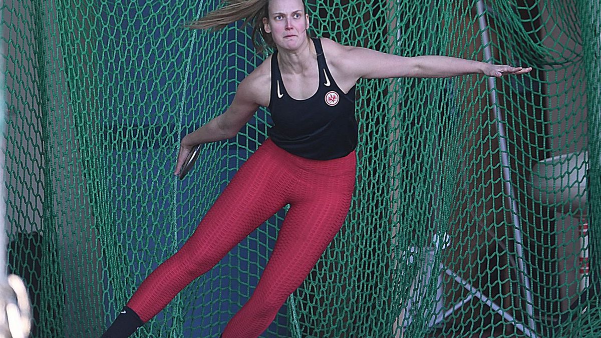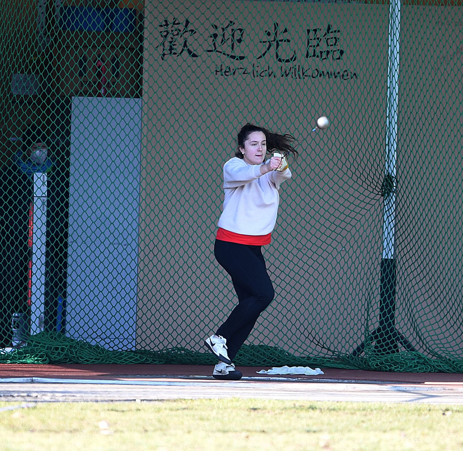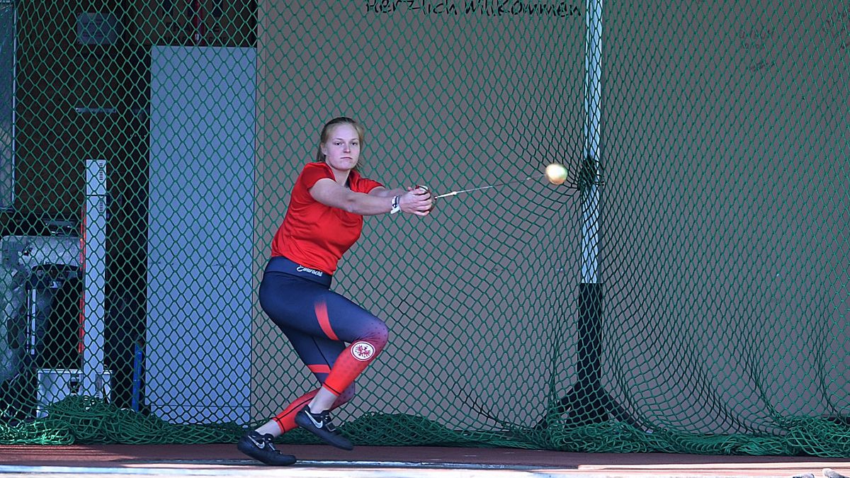 Strahlendes Frühlingswetter beim 2. Einladungs-Werfertag von Eintracht Frankfurt war mit ein Garant dafür, dass es mit Hammer, Diskus und Speer durchweg gute Leistungen gab. Wie schon beim ersten Durchgang im Januar ließ Samantha Borutta (TSV Bayer 04 Leverkusen/noch U23) erneut nichts anbrennen, beförderte ihr vier Kilogramm schweres Sportgerät auf die Siegesweite von 65,36 Metern und blieb damit einmal mehr über der EM-Norm (64,80 Meter) für Bergen/NOR. Die deutsche Vizemeisterin im Hammerwerfen hatte auch eine tolle Serie mit gleich sechs gültigen Versuchen, die alle erst jenseits der 62 Meter auf dem Boden aufschlugen. Der zweite Platz ging mit 62,28 Metern an Sophie Gimmler vom LC Rehlingen. Die Top-Drei komplettierte Lucie Holzapfel. Die Lokalmatadoren von der ausrichtenden Eintracht zeigte eine famose Leistungssteigerung. Nach zwei Würfen im Bereich von 59 Metern gelang dann im vierten Versuch der Durchbruch. Mit einem kleinen Jubelschrei quittierte Lucie (noch U23) ihre neue Bestweite von 60,11 Metern und die Steigerung ihres alten Hausrekordes um knapp über drei Meter. Das Feld der Frauen komplettierte Laura Siegel (LSG Goldener Grund/auch U23) als Vierte mit 50,87 Metern.