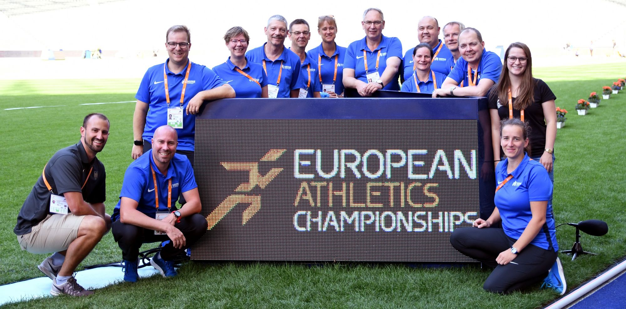 Mit diesem Beitrag schließen wir die Berichterstattung von den Leichtathletik-Europameisterschaften in Berlin ab. Es hat uns sehr viel Spaß gemacht - trotz der zu Beginn ziemlich unerträglichen Hitze und der eher dürftigen Getränkeversorgung im Pressezelt. Nach einer Woche mit ausschließlich blubberfreiem Vittel ist unser Bedarf an diesem Produkt jedenfalls erst einmal gedeckt. Aber vielleicht hatte es ja einen gesundheitsfördernden Aspekt und damit einen höheren Sinn. Für die hessischen Athletinnen und Athleten sind nicht alle Hoffnungen, Wünsche und Träume in Erfüllung gegangen; aber im Olympiastadion waren auch viele Kampfrichter und Besuchergruppen aus Hessen am Start. Sehen Sie selbst.