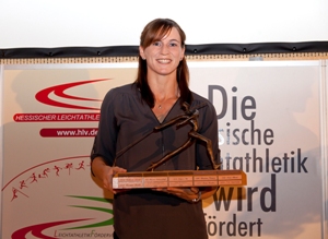 Im Rahmen seiner jährlichen Gala hat der Hessische Leichtathletik-Verband (HLV) den HLV-Ehrenpreis 2015 an Claudia Rath von der LG Eintracht Frankfurt vergeben. Die in Hadamar geborene Mehrkämpferin ist die Nachfolgerin der Hammerwerferin Kathrin Klaas (ebenfalls Frankfurt), die die höchste HLV-Auszeichnung im Vorjahr erhalten hatte. Über den Wanderpreis heißt es in der Ehrungsordnung des HLV, dass er an Athleten verliehen wird, die über einen Zeitraum von mindestens fünf Jahren herausragende Leistungen bei hessischen und deutschen Meisterschaften erbracht und auch auf internationaler Ebener bedeutende Erfolge errungen haben. Außerdem sollen die Preisträger in Fairness und sportlichem Einsatz ein Vorbild für den Nachwuchs verkörpern. Ein Anforderungsprofil, das Claudia Rath zweifelsfrei erfüllt.<ENDE/> 1996 führte sie als Zehnjährige erstmals eine hessische Jahresbestenliste an (2.000 Meter, Hochsprung), drei Jahre später gewann sie ihren ersten Landesmeistertitel (Hochsprung), 2003 wurde sie deutsche B-Jugendmeisterin über 400 Meter Hürden. Auch im Drei- und Weitsprung sammelte sie hessische Titel.
