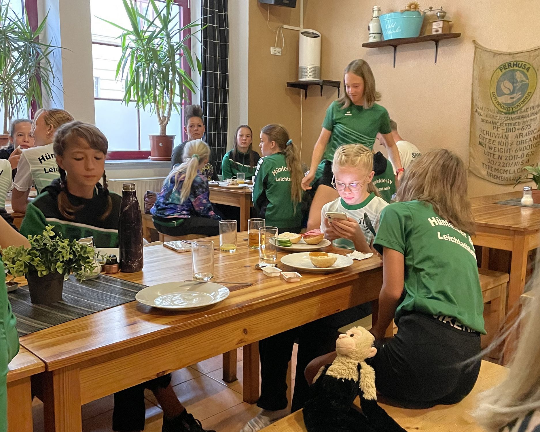 Gestartet sind wir am Freitag nach der Schule. Nach der Ankunft in Leipzig standen Zimmer beziehen, die Wettkampfvorbereitung und ein gemeinsames Abendessen auf dem Programm. Und der Weg zum Restaurant wurde gleich noch für etwas Kultur genutzt; Leipzig hat einiges zu bieten, man kann schon einiges ansehen, und es gibt immer wieder Neues zu entdecken. Gemeinsames Essen, ein gutes Stichwort, gar nicht so einfach für 36 Athleten PLUS …, rd. 50 Personen ein Restaurant zu finden in dem man gemeinsam essen kann! Aber wir haben fleißige Helfer die das managen!