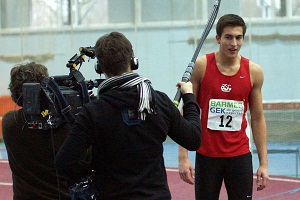 Wie bereits auf hlv.de zu lesen, sorgte Dennis Hutterer bei den Deutschen Hallenmehrkampf-Meisterschaften in Frankfurt-Kalbach für einen echten Paukenschlag. Das Nachwuchstalent vom ASC Darmstadt holte sich am Sonntag den Deutschen Meistertitel – mit ganz starken 5.403 Punkten und etwa 300 Punkten Vorsprung zum Zweitplatzierten! „Besser hätte es wirklich nicht laufen können, es war alles perfekt“, freute sich Dennis hinterher. Begleitet wurde Dennis den Wettkampf über von einem Kamera-Mann des hr-Fernsehs. Ob beim Aufwärmen, den ersten Läufen über die Hürden, zum Kurzinterview oder im Wettkampf selbst, einige Sequenzen wurden in einem kurzen Bericht abends in der Hessenschau gezeigt <ENDE/> und können hier angesehen werden. Eine kleine Auswahl erster Bilder der deutschen Mehrkampfmeisterschaften können bereits von allen Facebook-Nutzern hier eingesehen werden - weitere folgen. (Benjamin Heller)