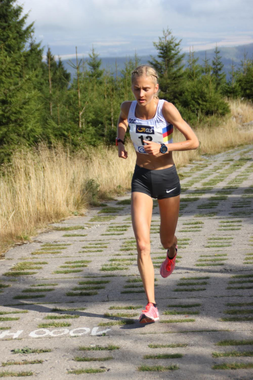 Als es nach acht Kilometern auf die Panzerstraße zum Brocken ging, machte Lisa Oed richtiggehend Druck und konnte ihre hartnäckige Wegbegleiterin Stefanie Doll (SV Kirchzarten), die Schwester des Weltklasse-Biathleten Benedikt Doll, abschütteln - und zur ersten Meisterschaft bei den Frauen nach 58:28 Minuten laufen. „An den Titel habe ich vor dem Rennen nicht gedacht, an eine Medaille schon“, so die 19-jährige Hanau-Rodenbacherin, die in zwei Wochen in Andorra nach ihrem EM-Berglauftitel 2017 nun zum WM-Titel laufen möchte. „Auch wenn ich in diesem Jahr nur den Feldberglauf bestritten habe, weiß ich nun, wo ich stehe. Und es fühlt sich gut an.“ Als Zugabe holte sie sich noch die U20-Meisterschaft. Mit einer knappen Minute Rückstand gewann Stefanie Doll in ihrem ersten Berglaufjahr die Silbermedaille vor Titelverteidigerin Sarah Kistner (MTV Kronberg), die nach langer Verletzungspause allmählich wieder in Schwung kommt. „Mir fehlen einfach die Tempoläufe, aber ich denke, dass ich auf einem guten Weg bin. Ich werde noch den Hochfelln-Berglauf laufen und dann in die Saisonpause gehen. Dann werden wir sehen...“