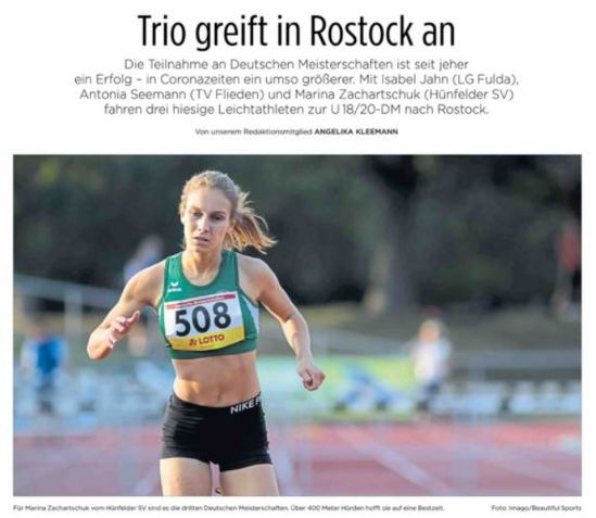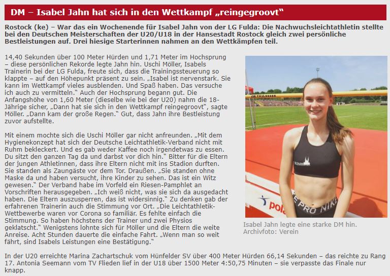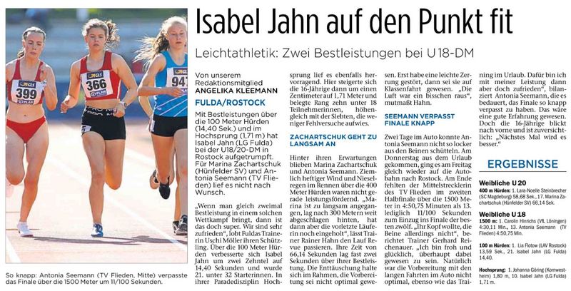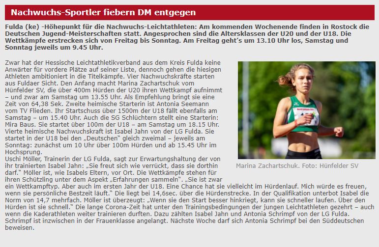 Aus dem HLV-Kreis Fulda-Hünfeld waren an diesem Wochenende 3 Athletinnen bei den Deutschen Jugend Meisterschaften der U20/18 in Rostock am Start.