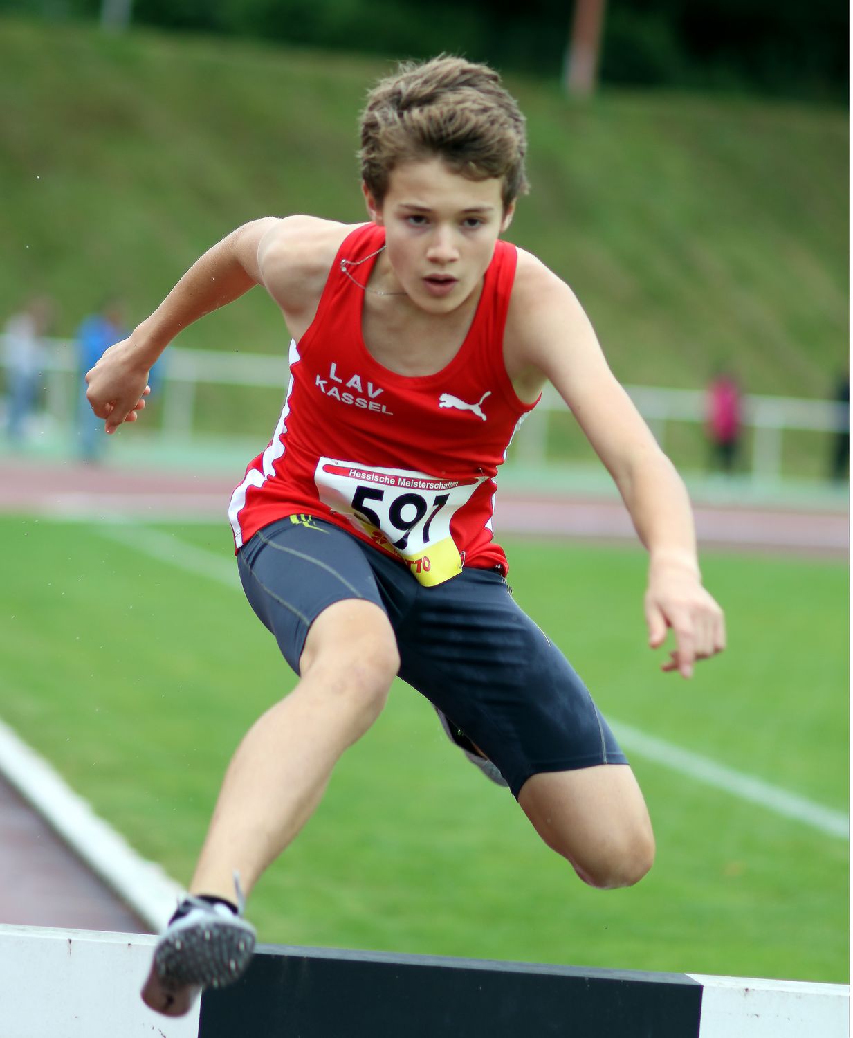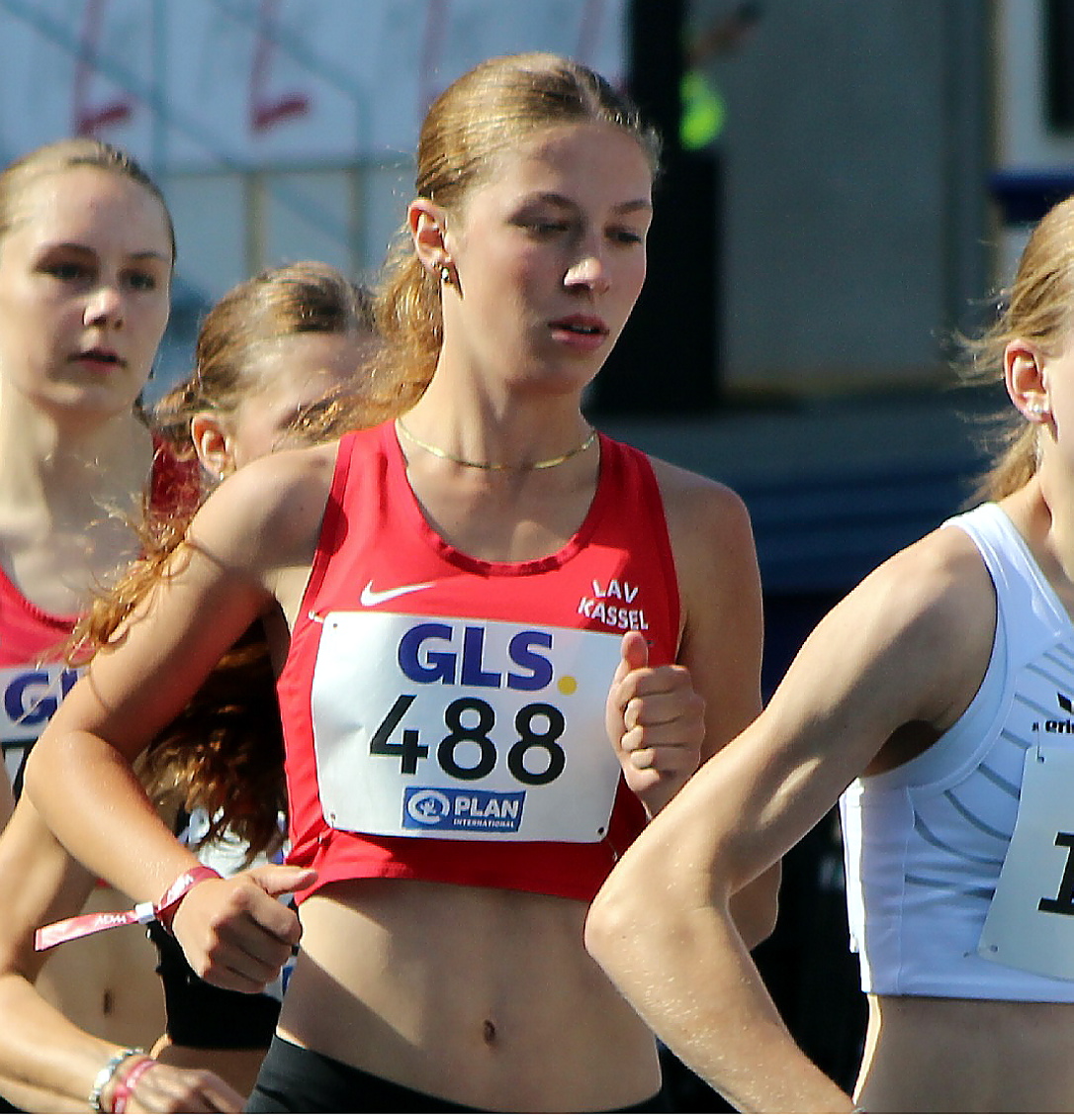 Weitere jungen Athleten erlebten im Ruhrgebiet den Höhepunkt ihrer bisherigen Laufbahn. Im großen Starterfeld über 2000 Meter Hindernis der U 18 hielt sich Noah Becker (LAV Kassel) von Beginn an vom Gerangel an der Spitze heraus um die Hindernisse stets gut im Blick zu behalten. Aus dem Mittelfeld heraus machte der Goetheschüler auf der Zielgeraden einige Plätze gut und steigerte sich als Achter um mehr als acht Sekunden auf 6:07,17 Minuten.