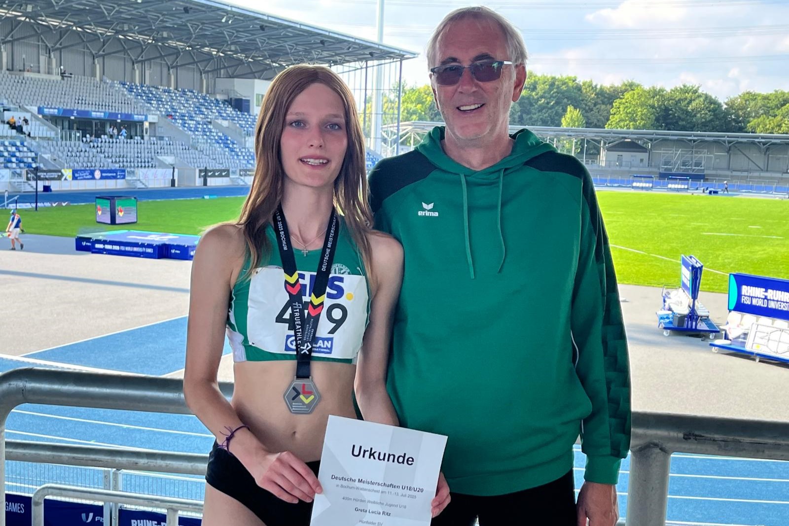 Bei den deutschen Meisterschaften der U18 sorgte Greta Lucia Ritz vom Hünfelder SV für eine kleine Sensation über die 400 Meter Hürden, Greta schaffte den Sprung auf Podest, holte die Deutsche Vize-Meisterschaft.