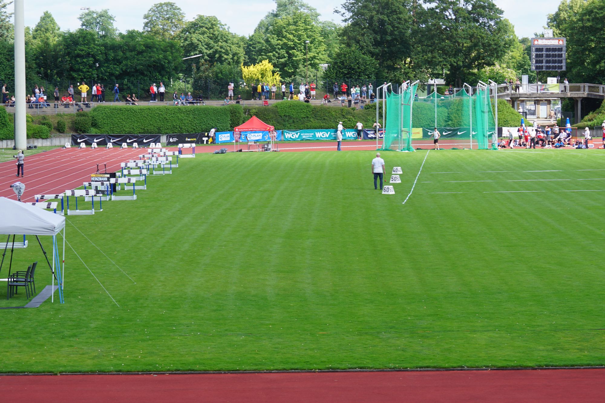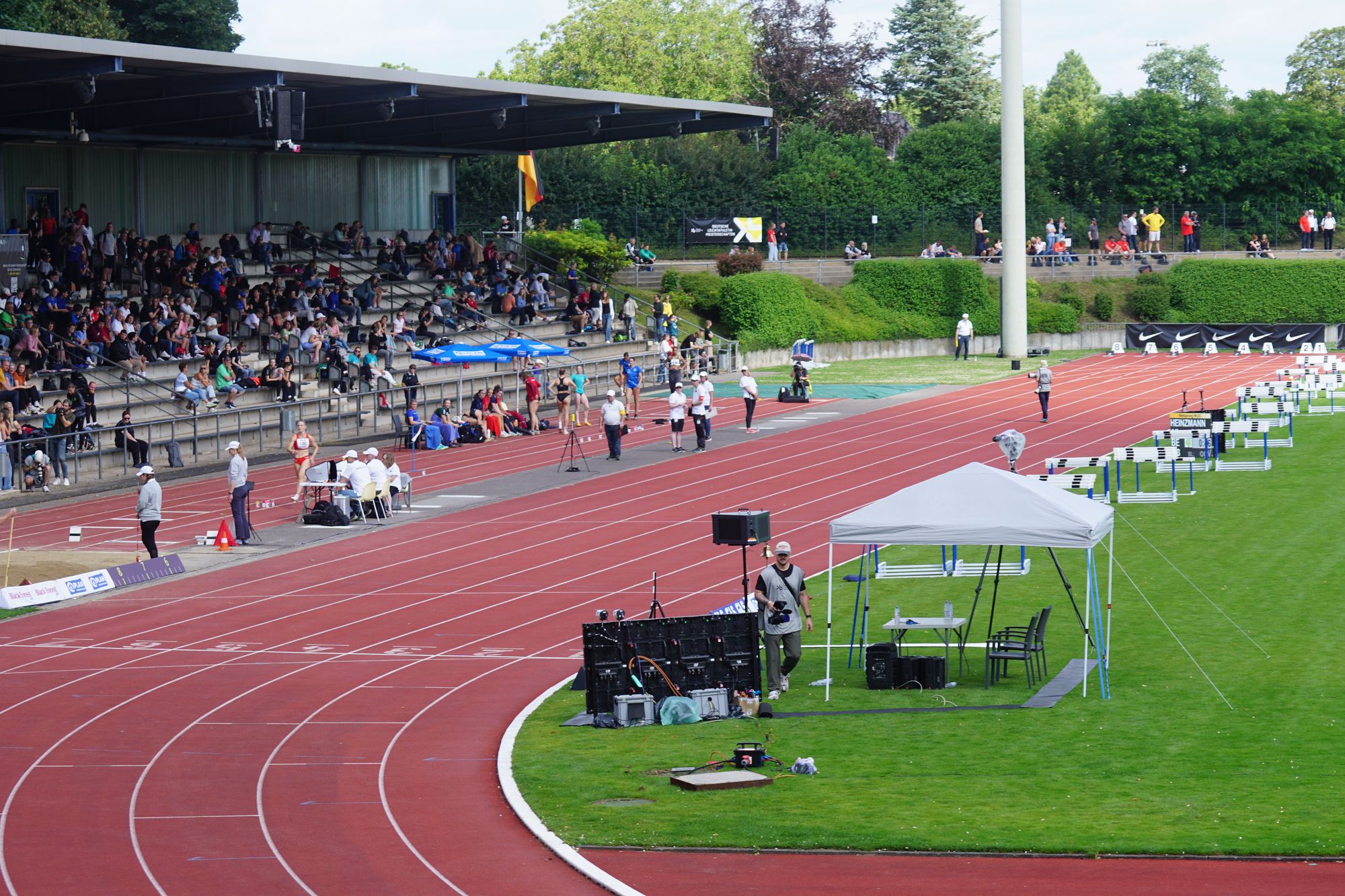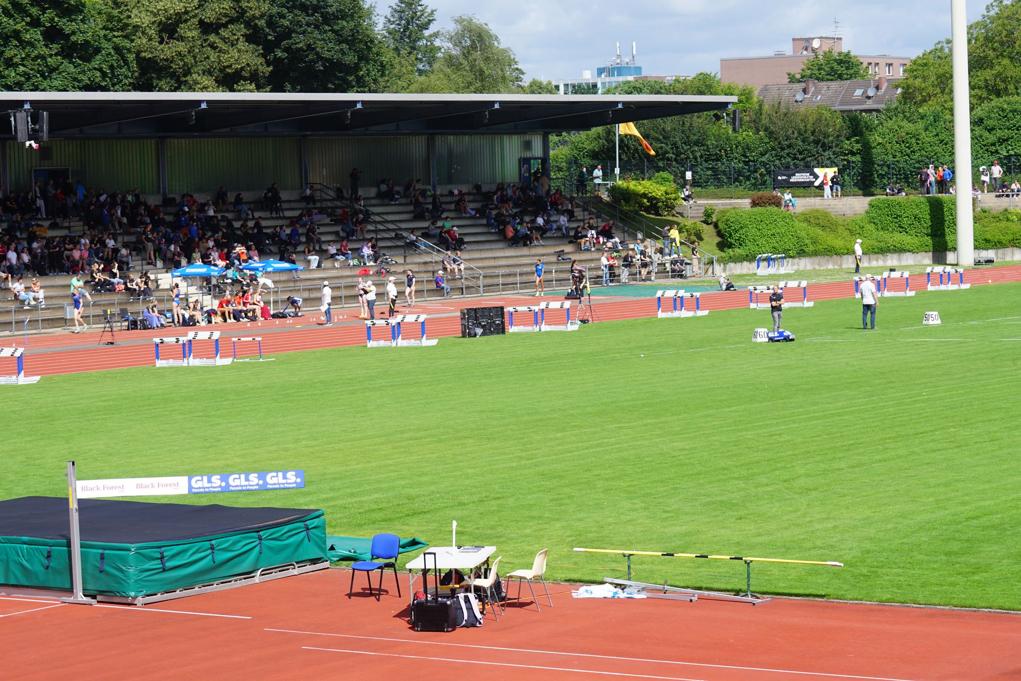 Nach der Anreise am Freitag ging es dann auch gleich am Samstag um 11:00 Uhr mit dem Vorlauf über 100m los. Aus 6 Vorläufen qualifizierten sich die jeweils 2 Laufschnellsten und 4 weitere Zeitschnellste für das Halbfinale. Darian wird in seinem Vorlauf Dritter und im Ranking der weiteren Zeitschnellsten Fünfter. Damit ist bereits nach dem Vorlauf Schluss, aus dem erhofften Zwischenlauf wird nichts. Rein von der Zeit her war es Platz „14“; aber das hilft auch nichts; ist eine rein statistische Größe!
